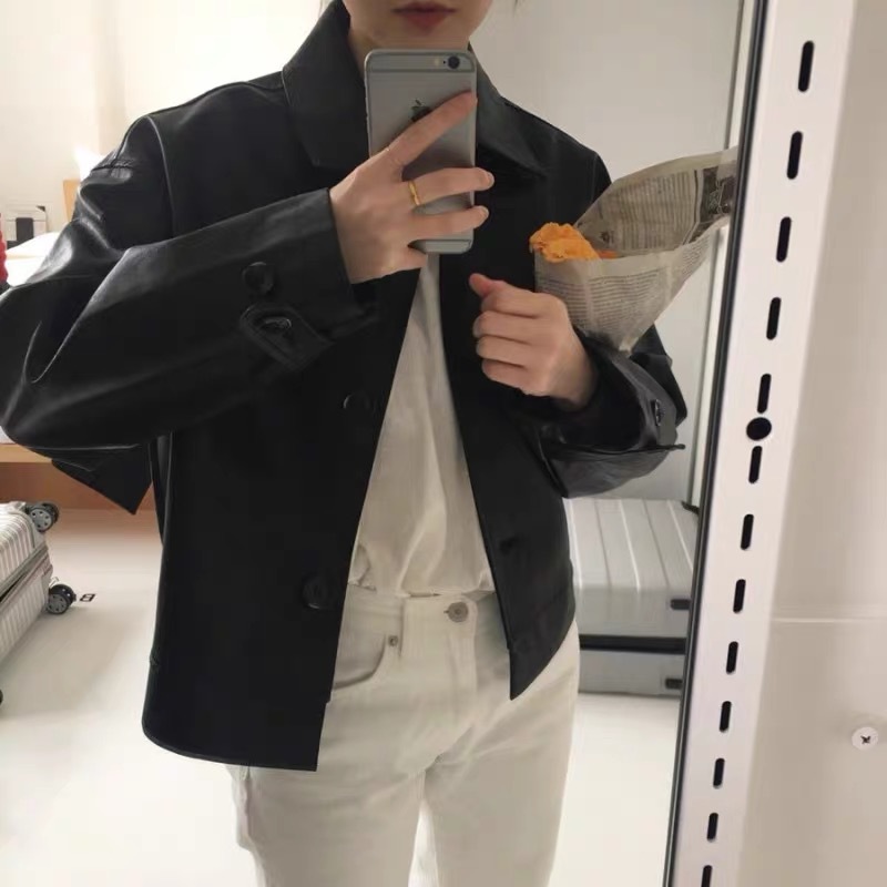 Главная страница > Южная Корея 2023 осень новая Ретро Красивая мотоциклетная куртка женская простая свободная короткая куртка из искусственной кожи оптом
