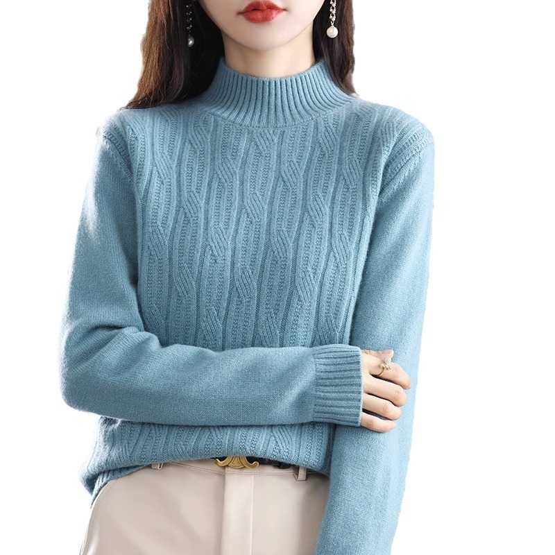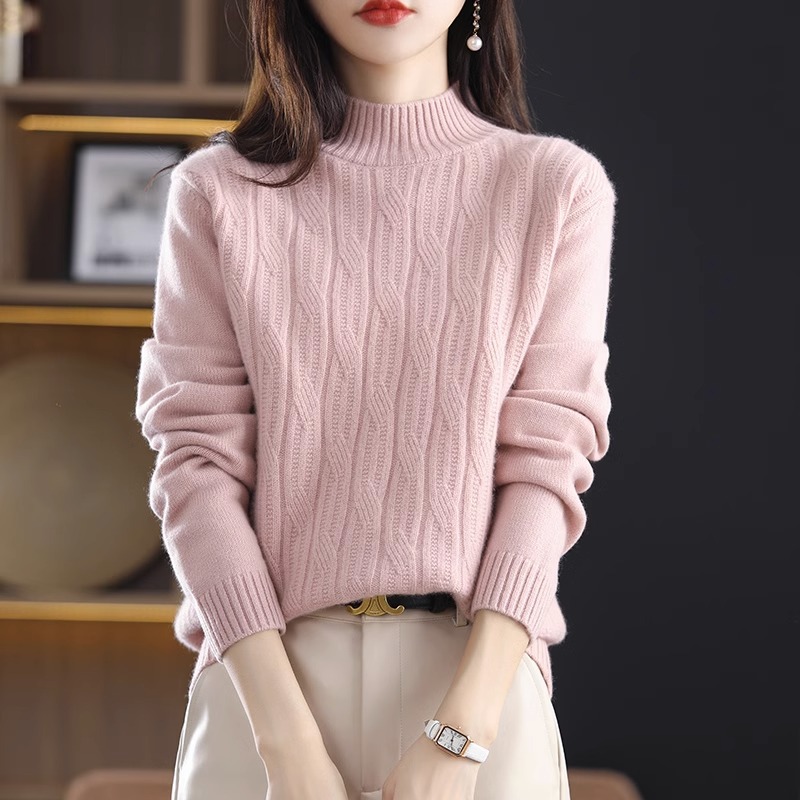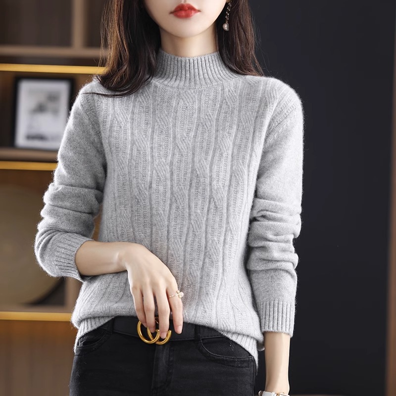 Главная страница > Новинка 2025 года, осенне-зимний женский полувысокий свободный универсальный свитер, пуловер, базовая рубашка, толстый мягкий вязаный топ