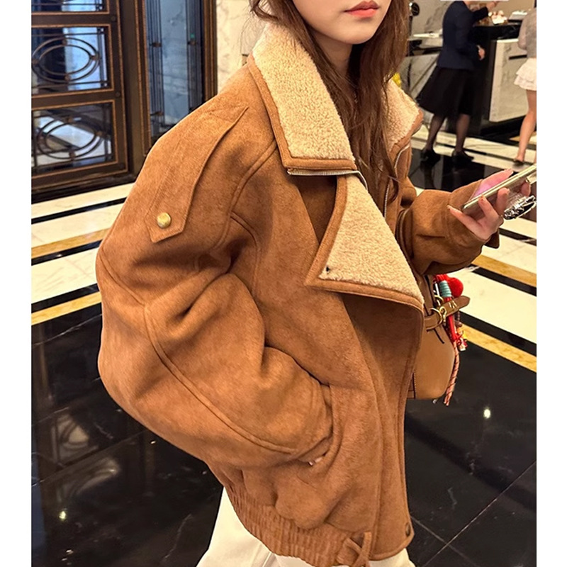 Главная страница > Новая популярная женская зимняя куртка из овчины цвета какао с двойным воротником, дизайн из замши и овечьей шерсти, модель 2025 года