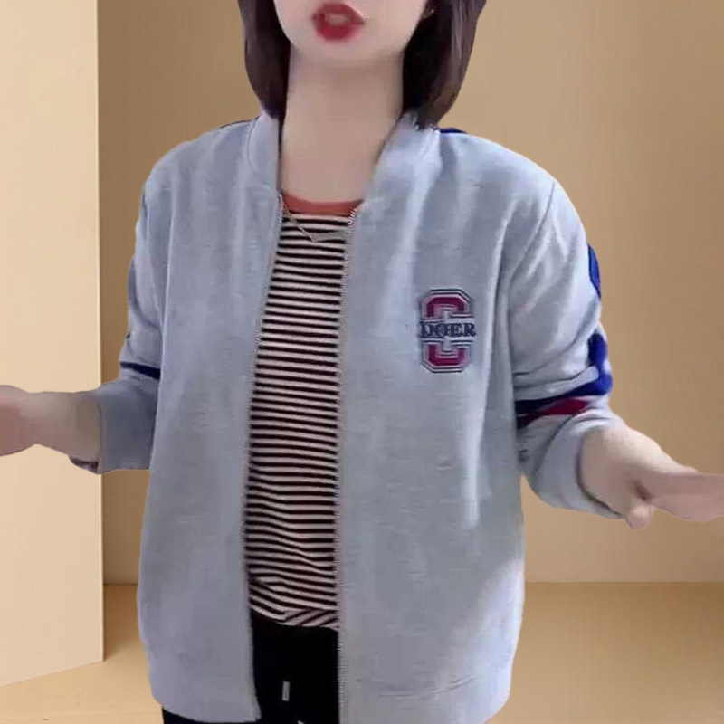 Главная страница > Женский свитшот больших размеров, новинка 2025 года, однотонный кардиган на молнии с вышивкой букв, женский тонкий и универсальный повседневный топ