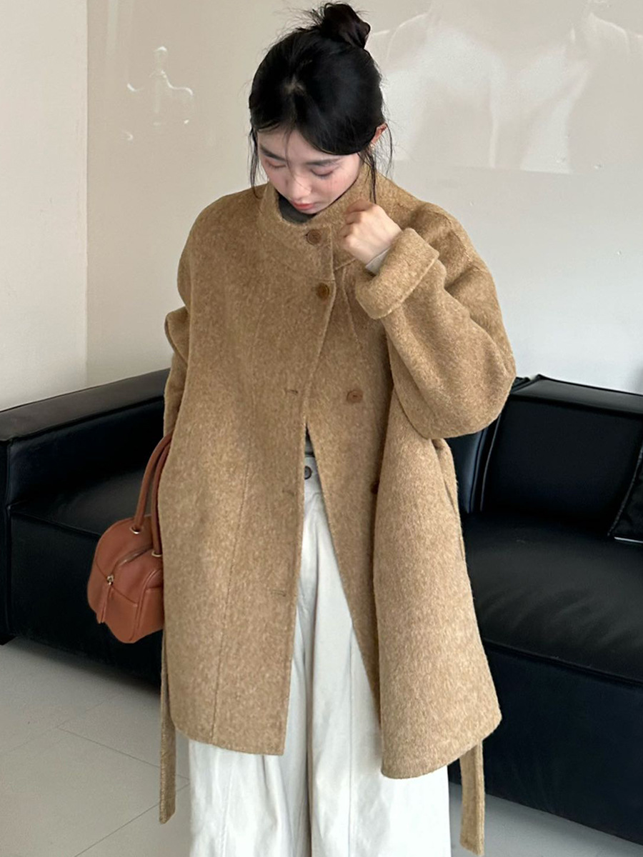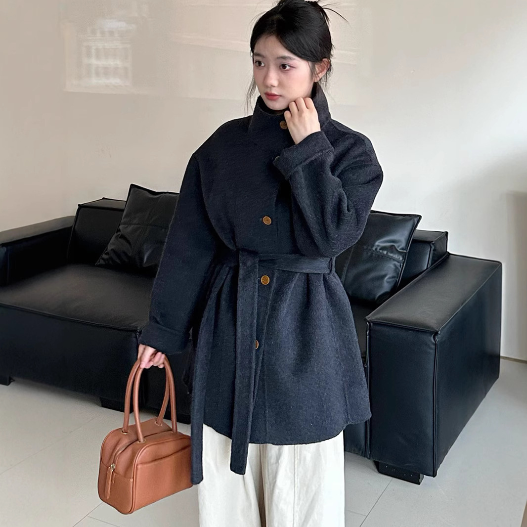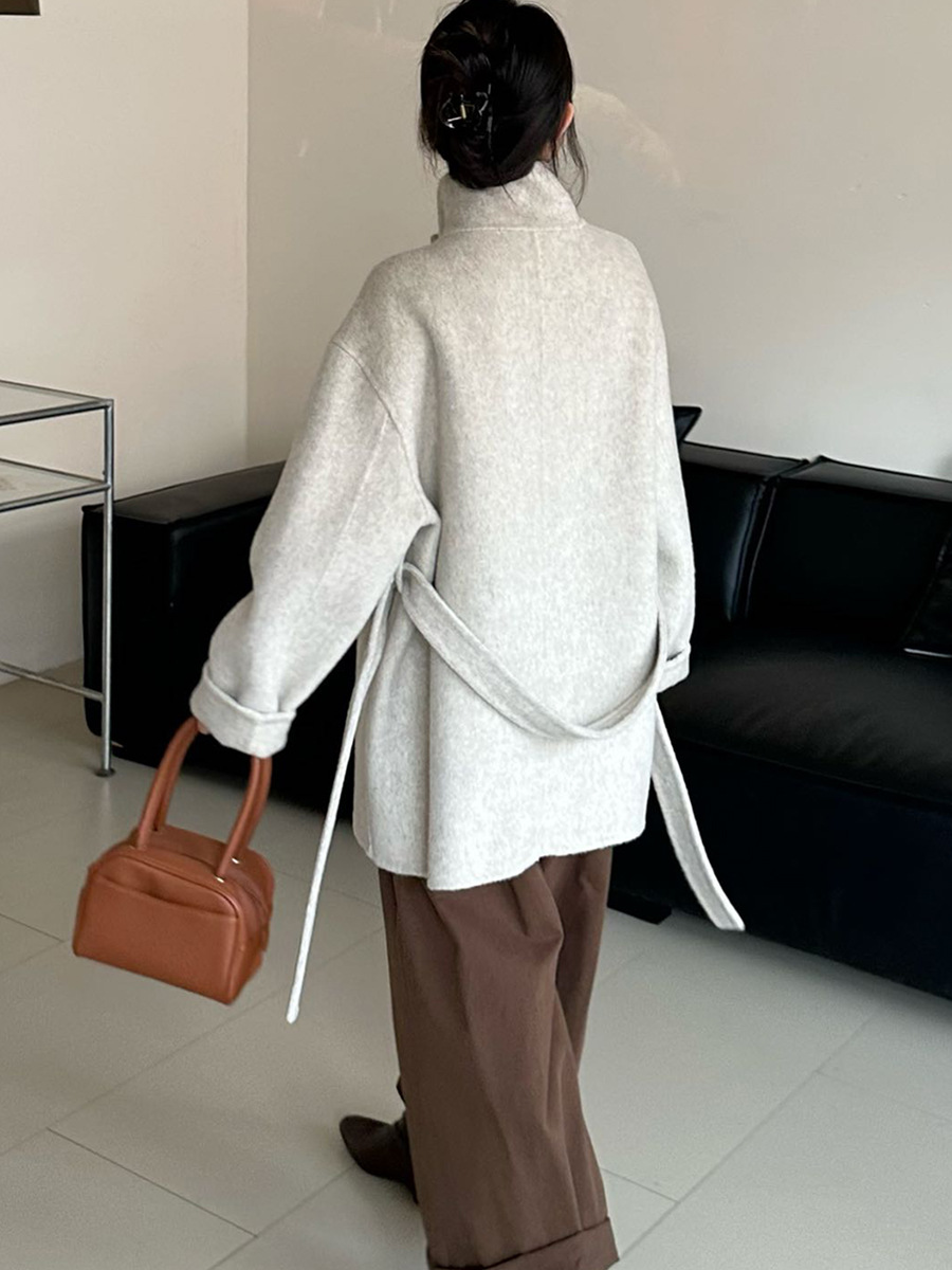Главная страница > Двустороннее шерстяное пальто на шнуровке дамы осень-зима новый маленький человек короткий свободный однобортный воротник кашемировое пальто