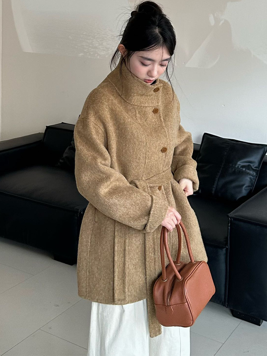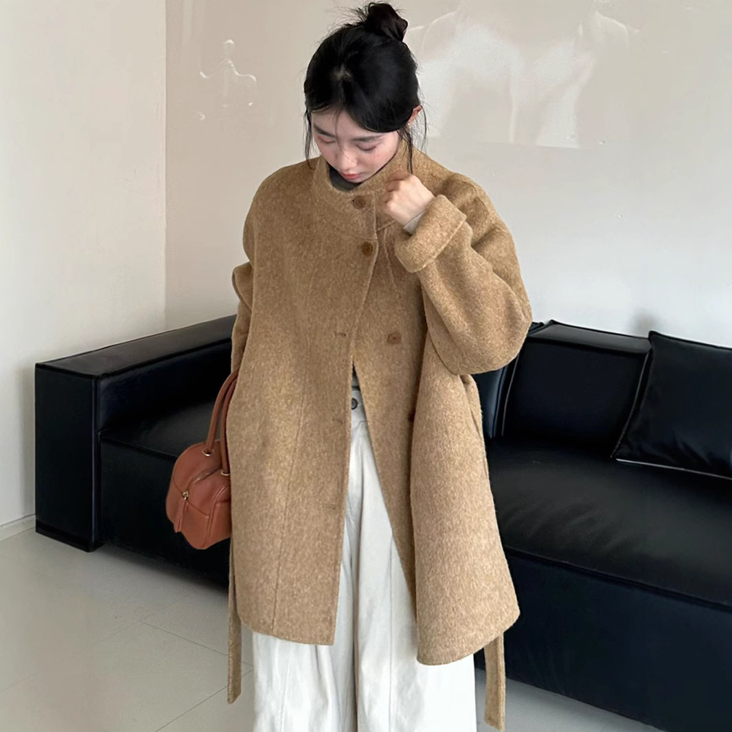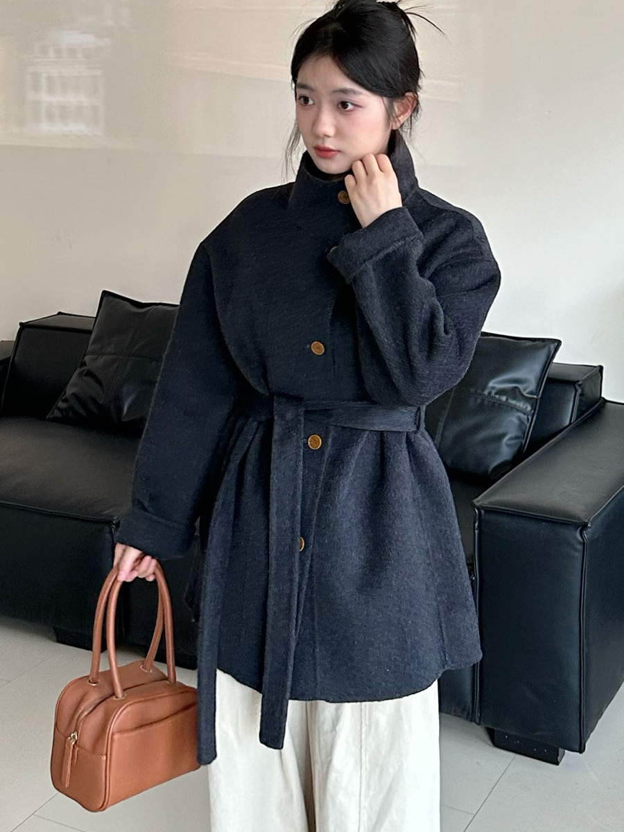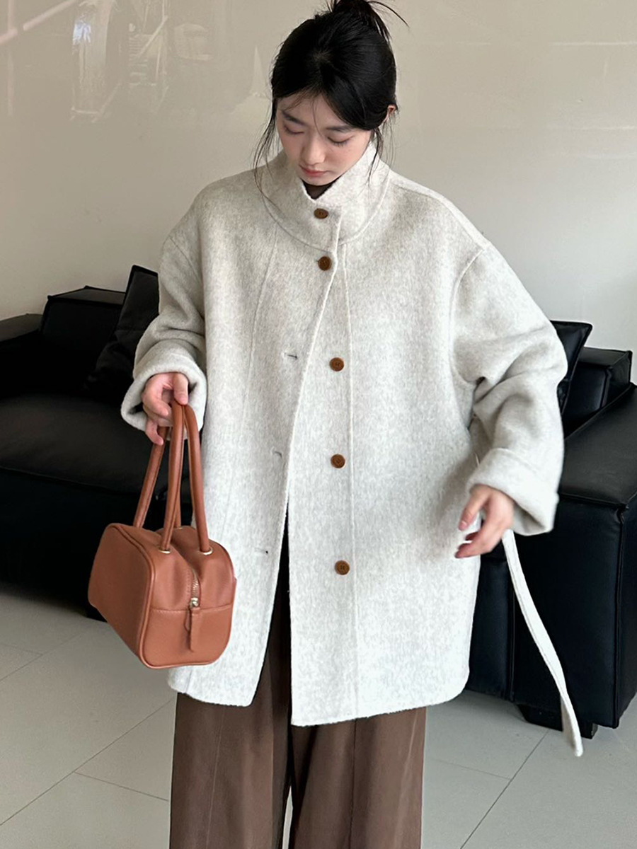 Главная страница > Двустороннее шерстяное пальто на шнуровке дамы осень-зима новый маленький человек короткий свободный однобортный воротник кашемировое пальто