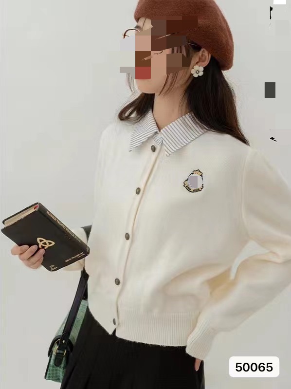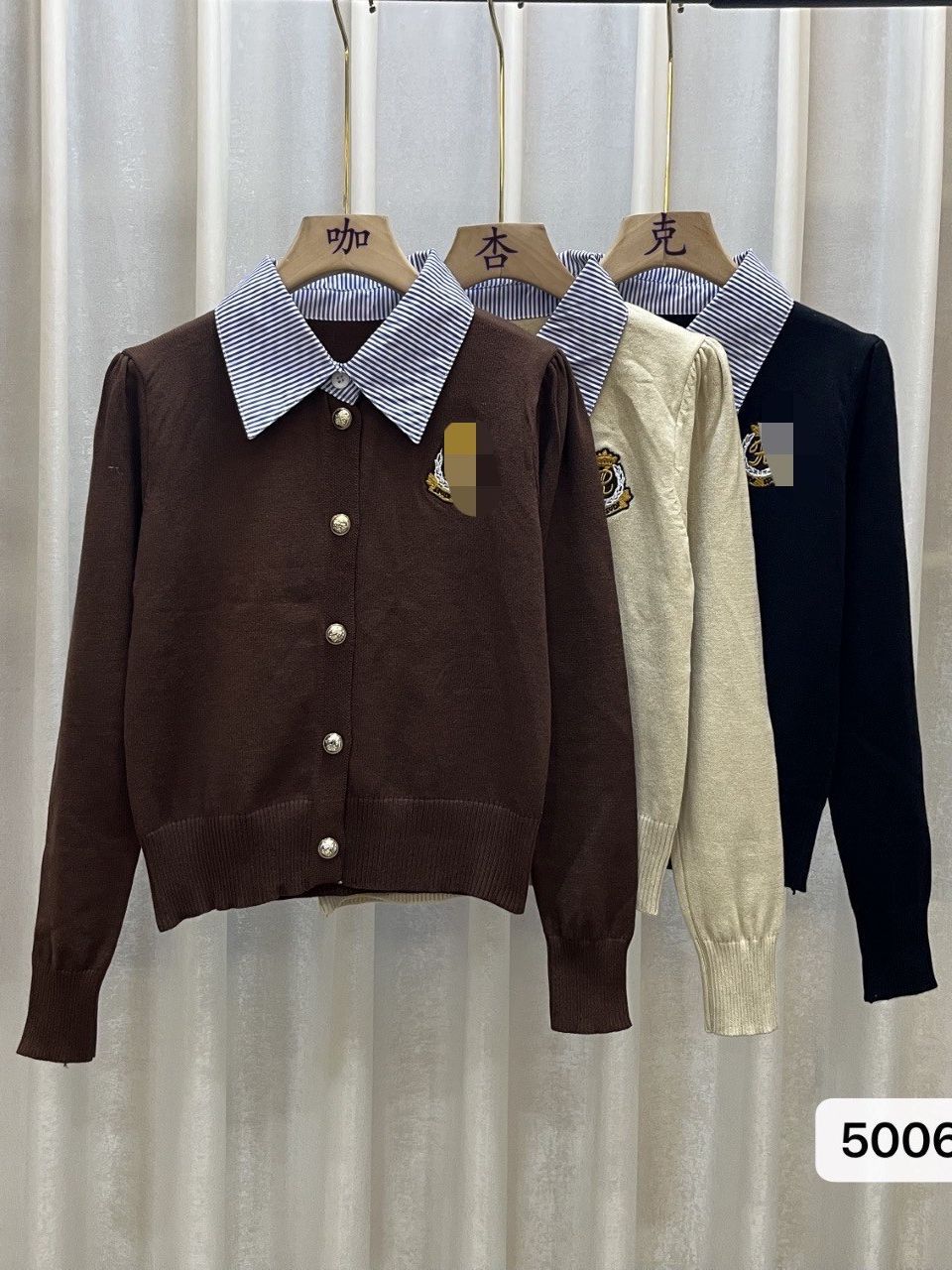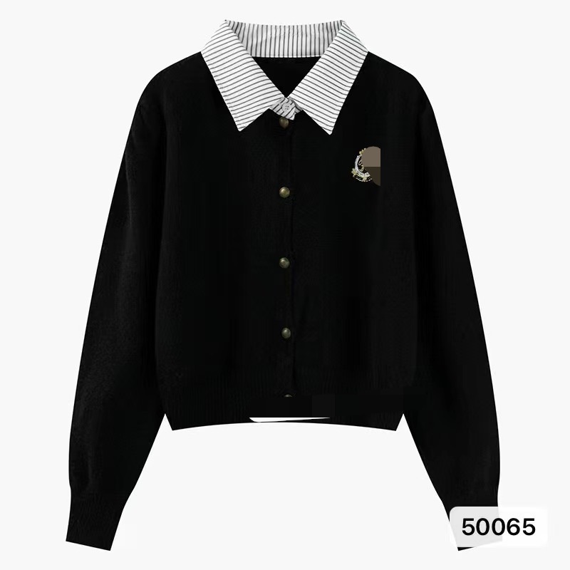 Главная страница > Поддельный вязаный кардиган с воротником поло из двух частей, свитер, женский весна и осень 2023, новый облегающий Вязаный топ в академическом стиле