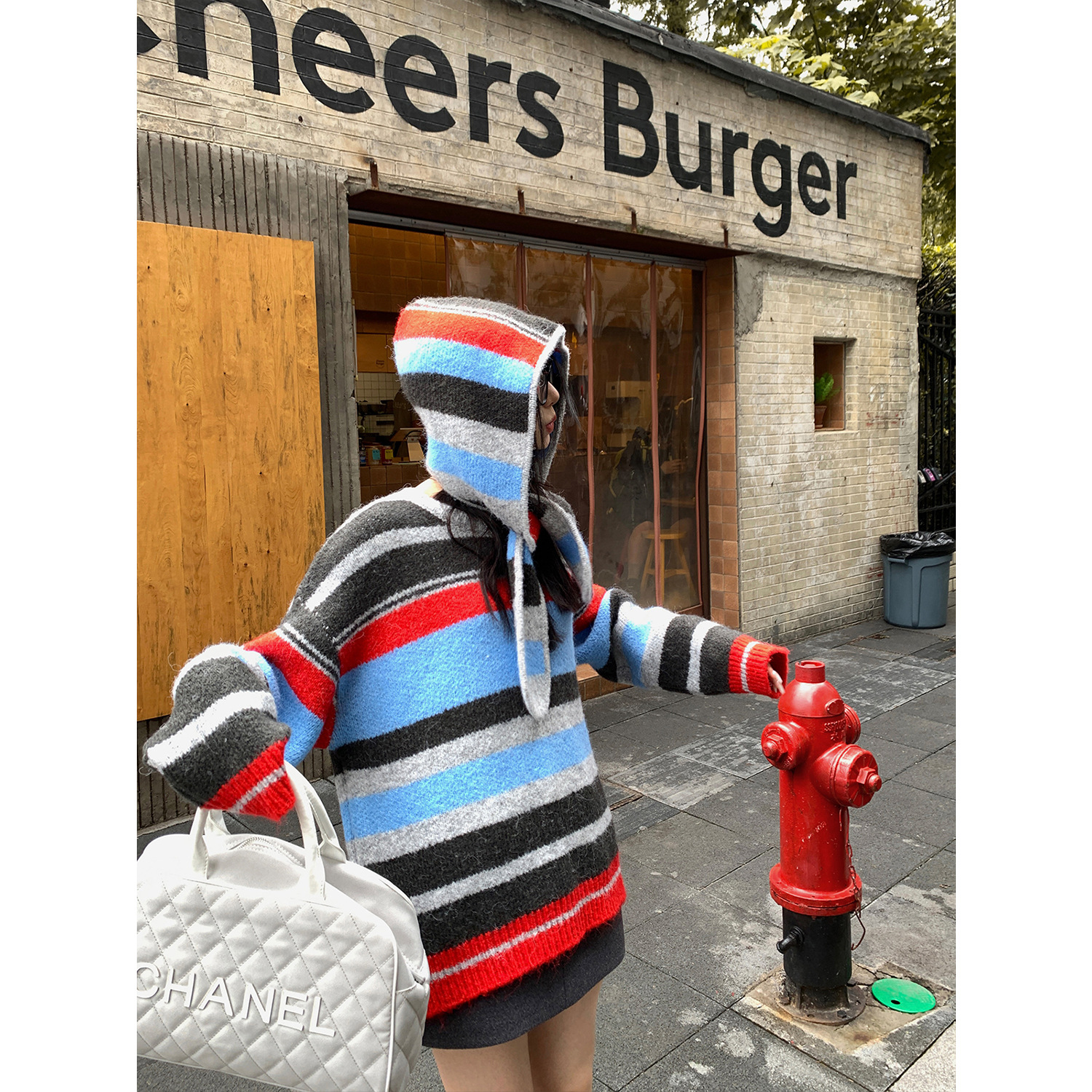 Главная страница > Ouyang 10/8 20:00 [Ретро красивый Гао Шэн] Съемный свитер в полоску с капюшоном вязаный кардиган