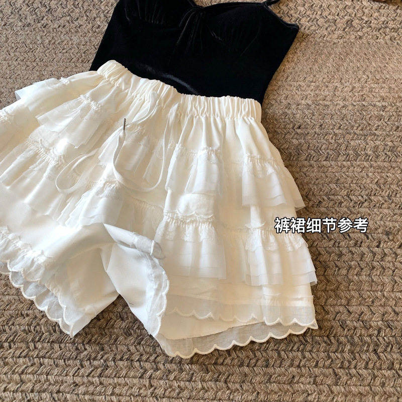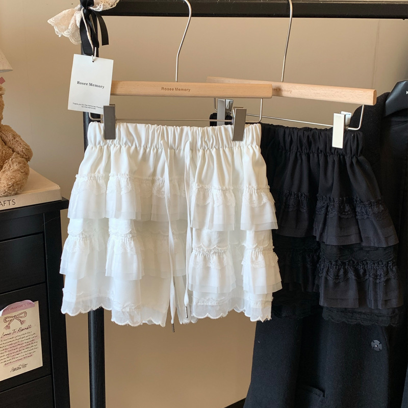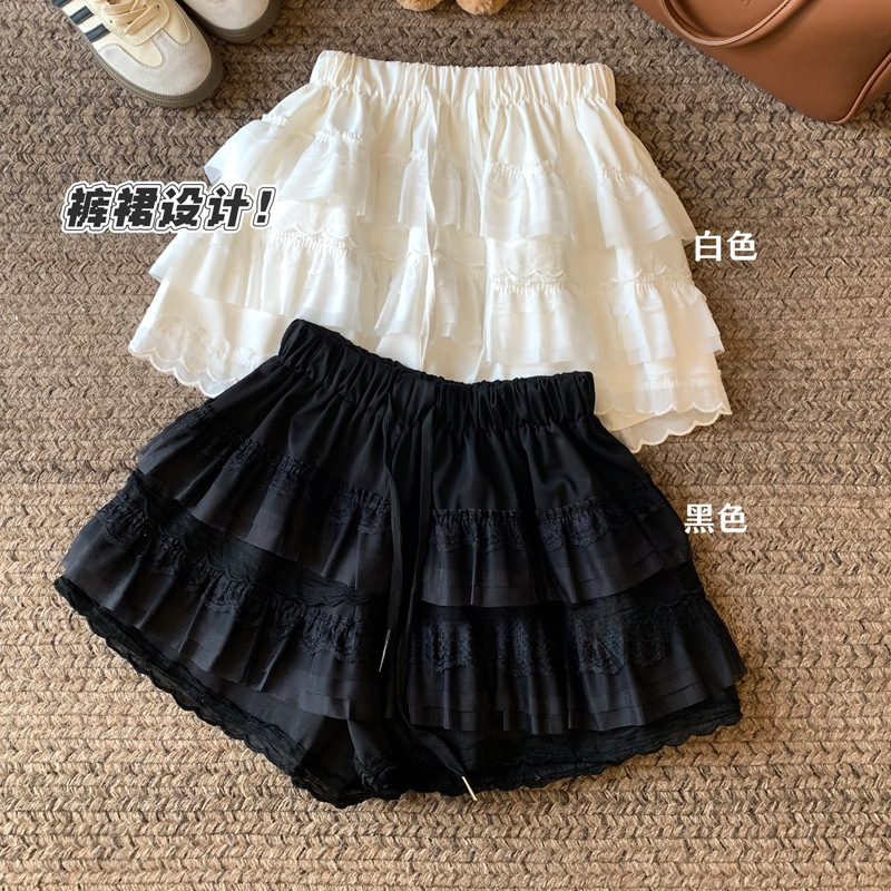Главная страница > Милые стильные кружевные брюки-кюлоты для женщин, новые летние белые шорты трапециевидной формы с высокой талией для похудения