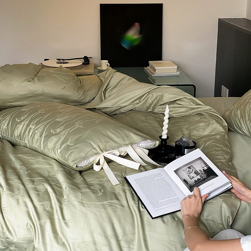 Главная страница > Комплект постельного белья из 100% длинноволокнистого хлопка (сатин), четыре предмета: простыня, пододеяльник с бантом, легкий люкс, высококачественная постельная утварь для весны и лета, 1.8 м