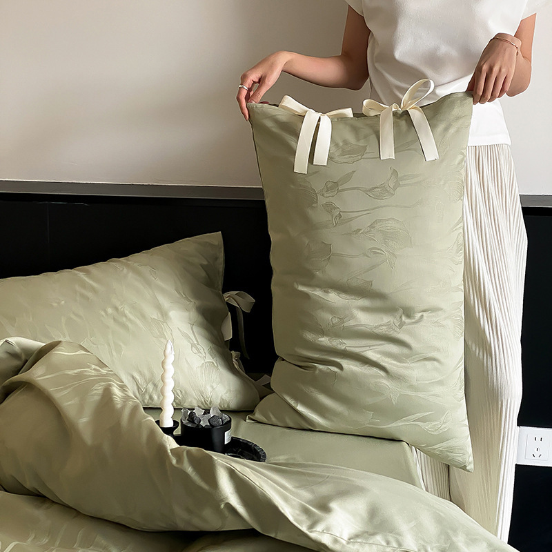 Комплект постельного белья из 100% длинноволокнистого хлопка (сатин), четыре предмета: простыня, пододеяльник с бантом, легкий люкс, высококачественная постельная утварь для весны и лета, 1.8 м