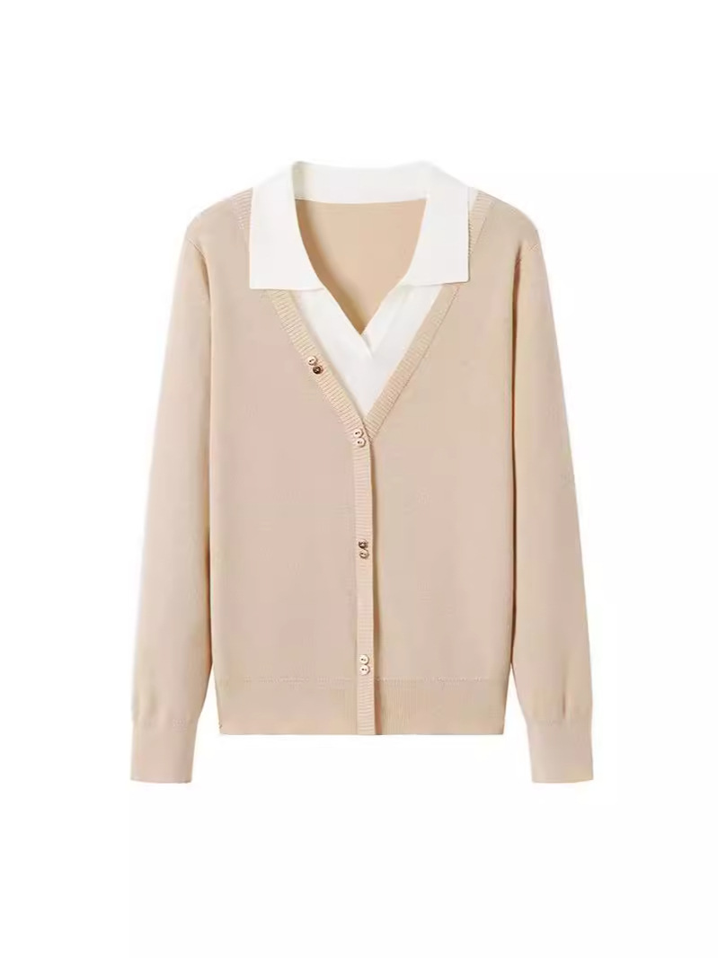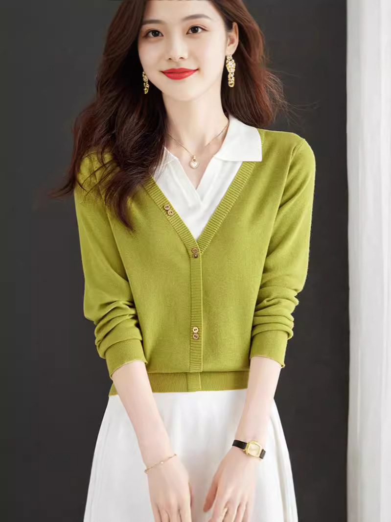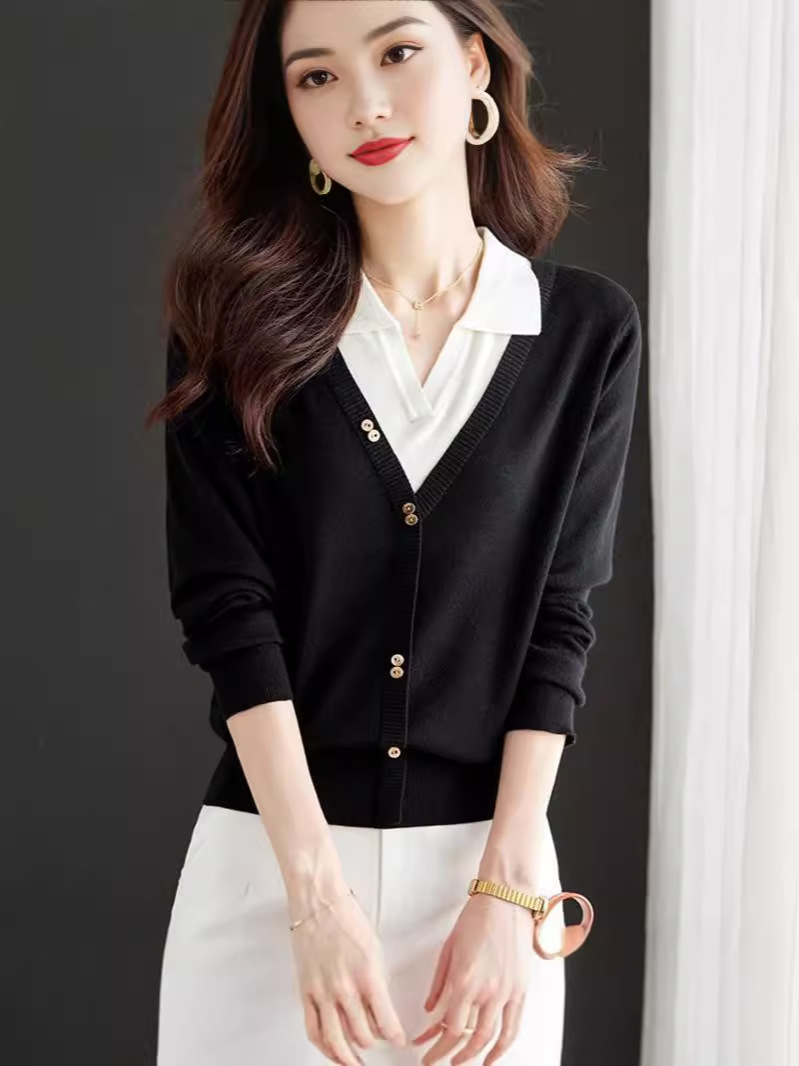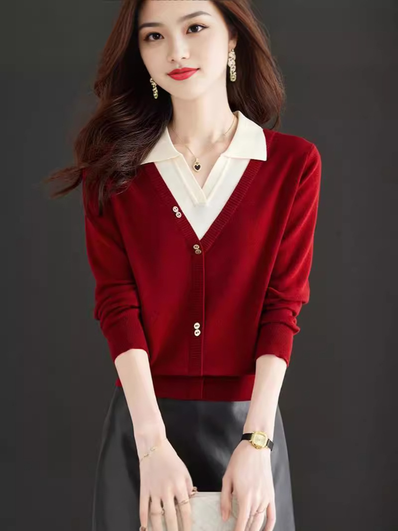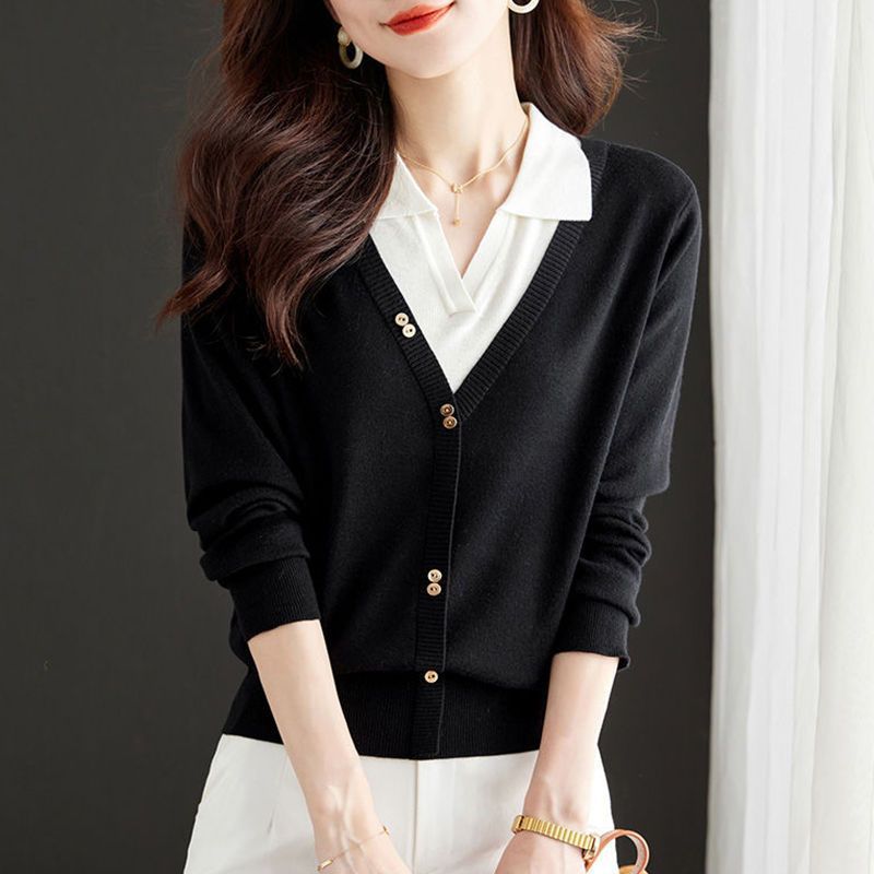 Главная страница > Polo воротник накладные два топа с длинными рукавами мама осень 2024 новый трикотаж женский свитер с лацканом свитер нижняя рубашка