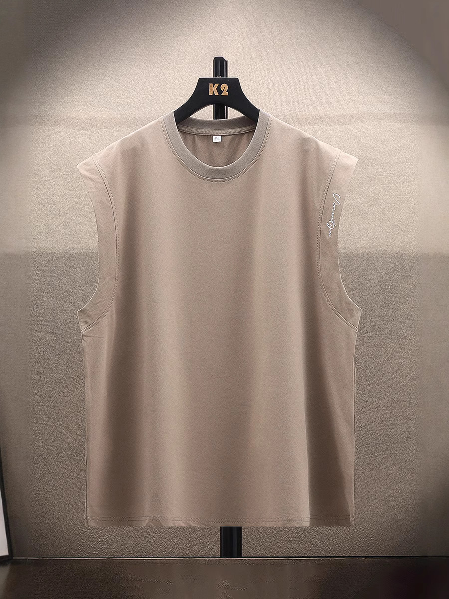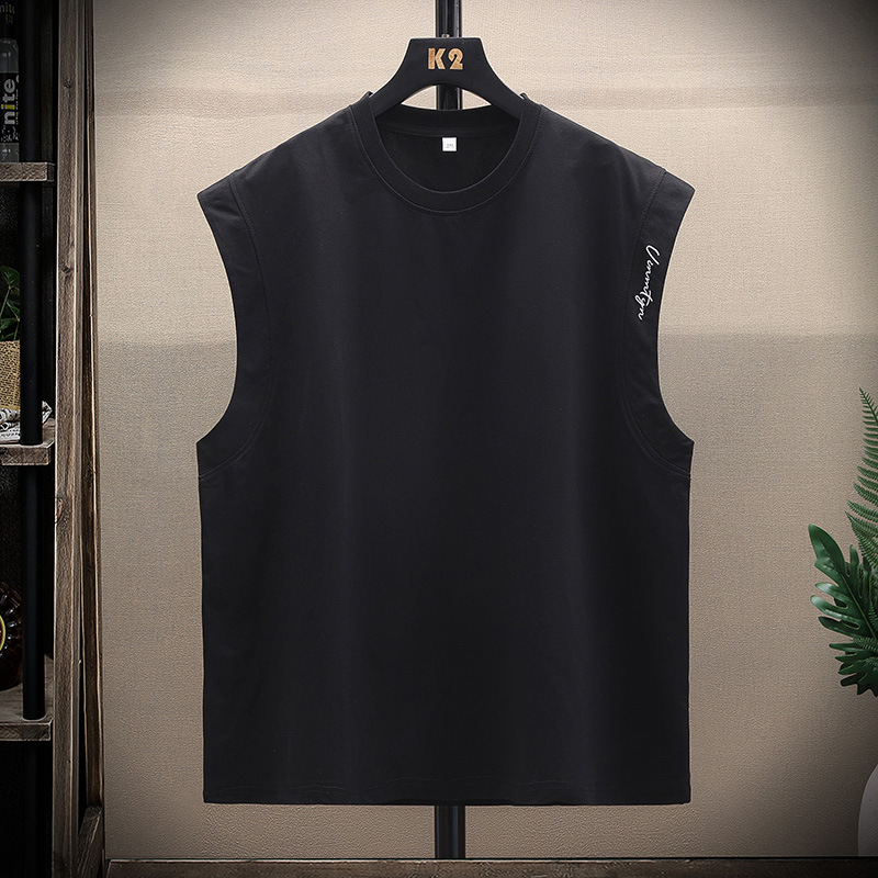 Главная страница > Летний молодежный модный жилет без рукавов с круглым вырезом, мужской жилет, свободная повседневная футболка большого размера, топ с вышивкой