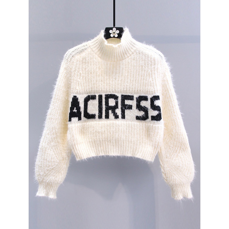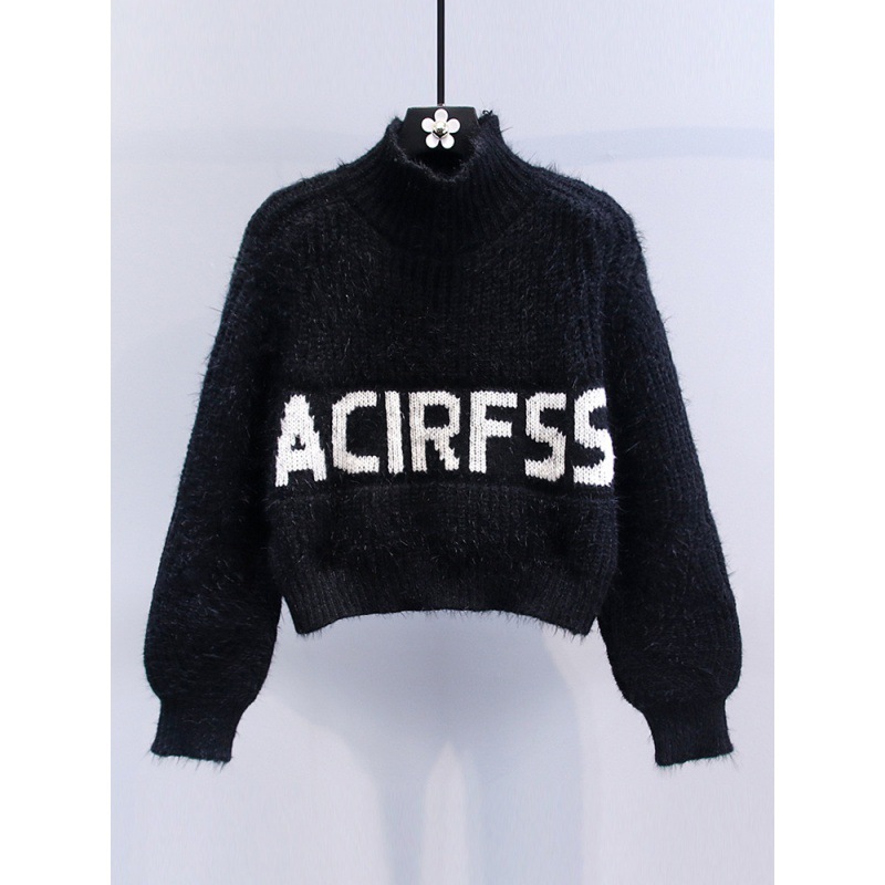 Главная страница > Высококачественный мягкий клейкий короткий свитер с высоким воротом для женщин, осень и зима 2024 года, Новый универсальный Повседневный свитер с буквами