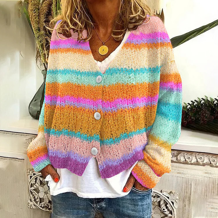 Главная страница > В наличии женский кардиган с 3D принтом, мягкий свитер, повседневное пальто, трикотажный свитер, модная серия Rainbow
