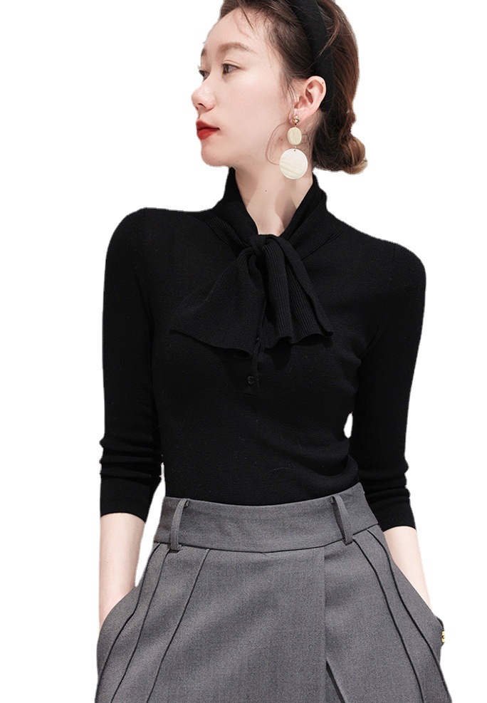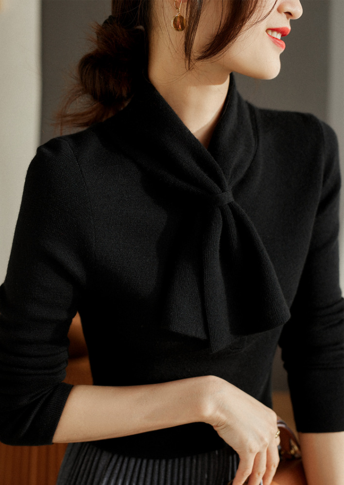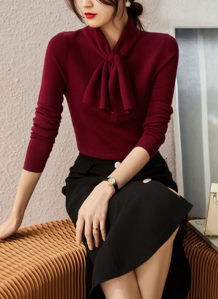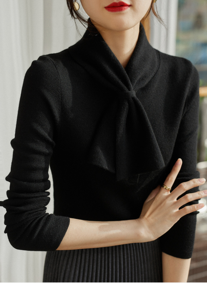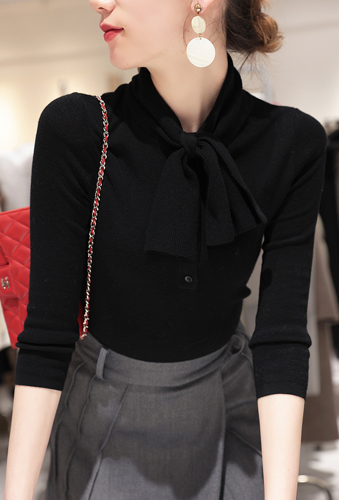 Главная страница > Xinfan Samei модный вязаный свитер с воротником из двух вещей, шикарный шерстяной флип-свитер, Женская приталенная Базовая рубашка