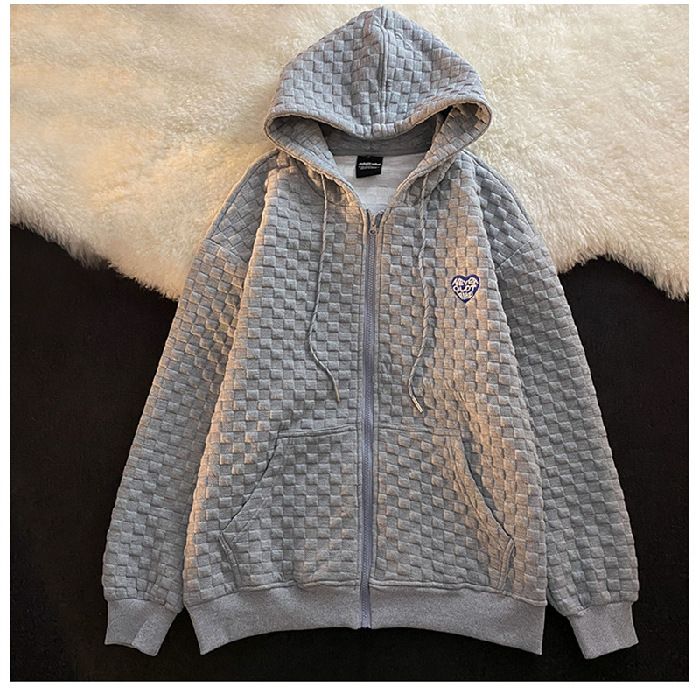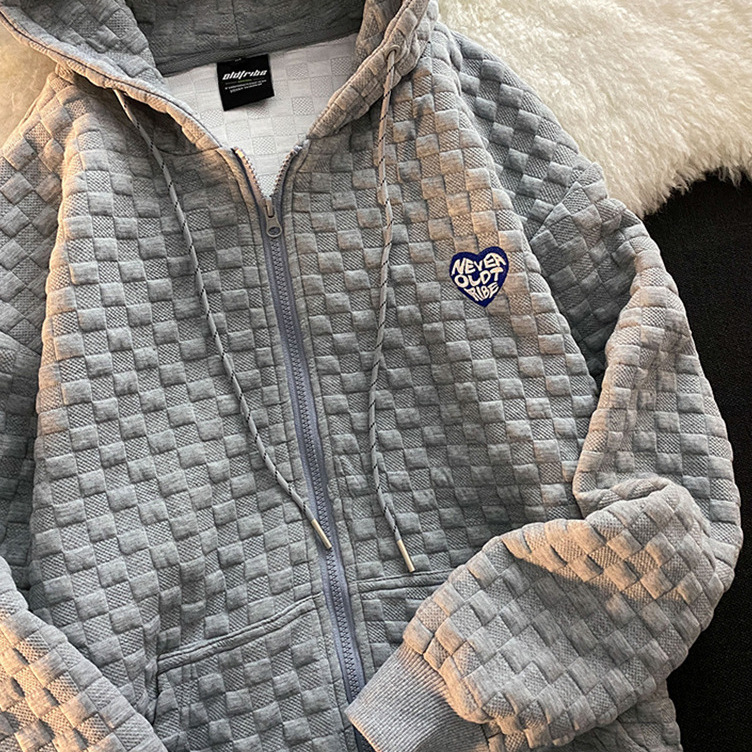 Главная страница > Прямые продажи с фабрики, осенне-зимняя новая вафельная толстовка, женский тонкий топ в корейском стиле, кардиган на молнии с капюшоном, женская куртка
