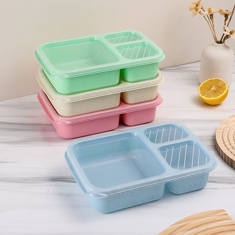Ланч-бокс с отделениями из пшеничной соломы, бытовой ланч-бокс с тремя отделениями, ланч-бокс для студентов, офисных работников, портативный ланч-бокс, хрустящий