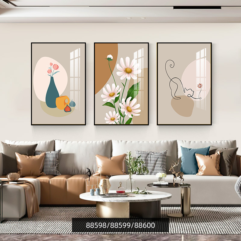 Главная страница > Скандинавская декоративная картина для гостиной, масляная живопись, фон для дивана, настенная картина для уютного дома, настенное панно, современный простой триптих, фреска