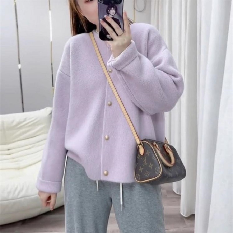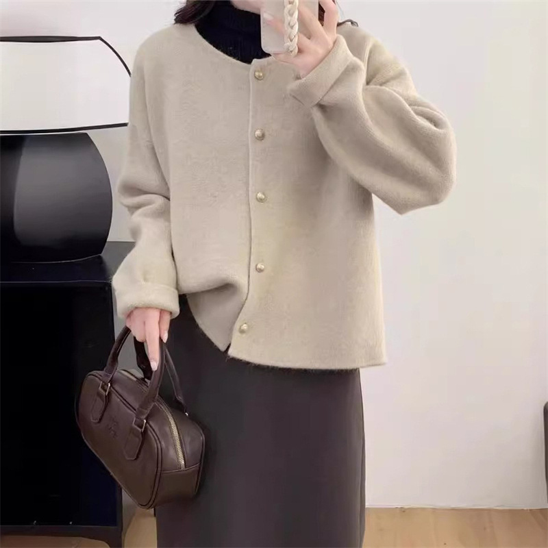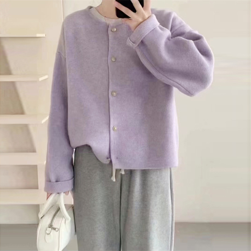 Главная страница > Однобортный однобортный свитер Дженни с круглым вырезом женский высокий смысл моды корейский трикотажный кардиган ленивый