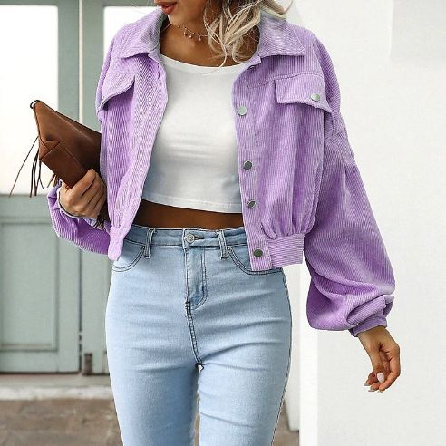 Главная страница > Amazon Внешняя торговля Женская мода Повседневная Вельветовая куртка с лацканами и рукавами-фонариками однобортное короткое пальто женская оптовая продажа