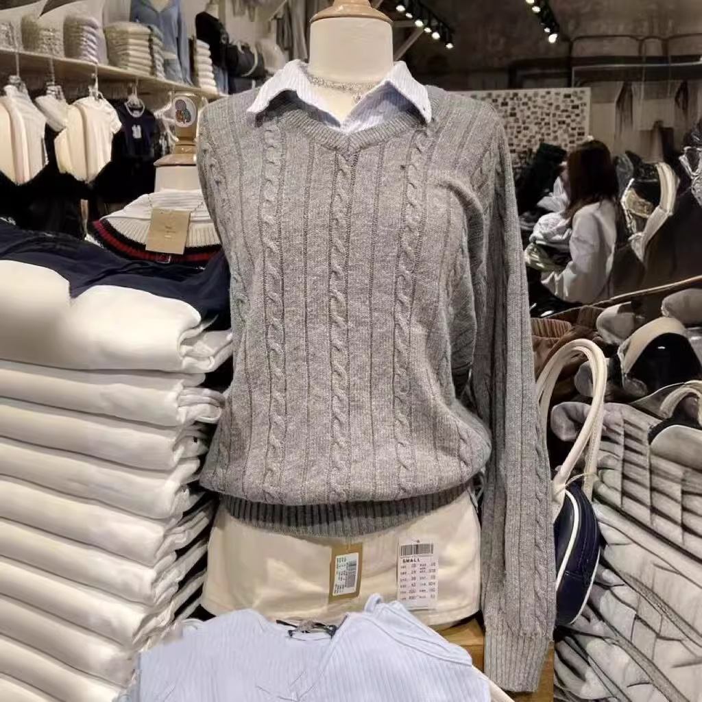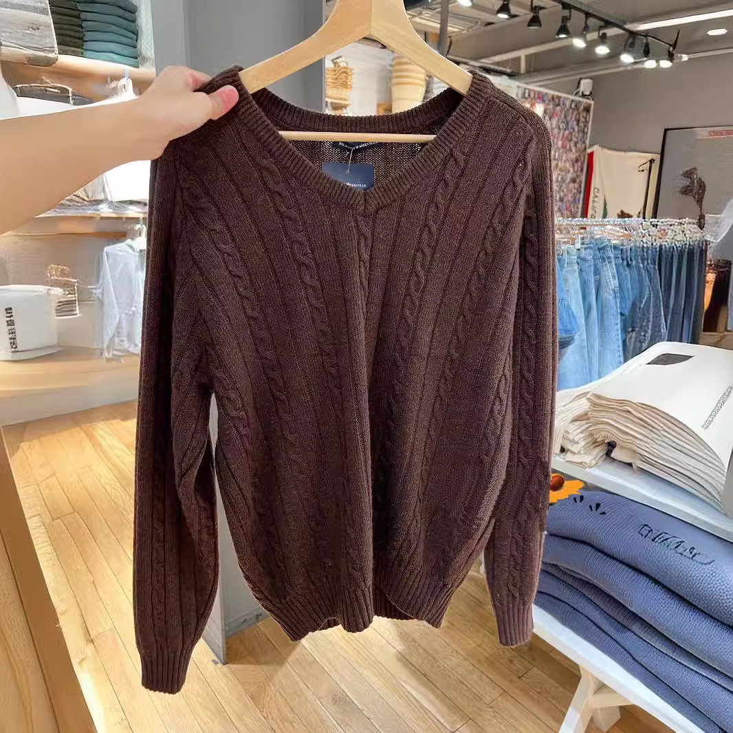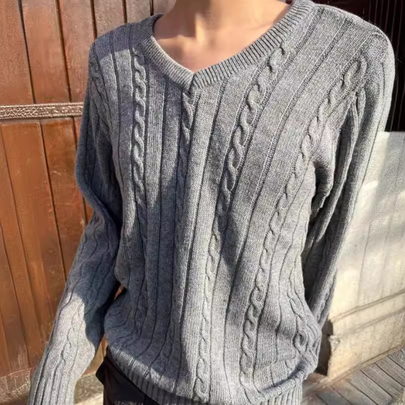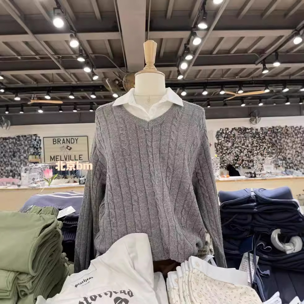 Главная страница > BM Ветер американский ретро V-образный вихрь серый вязаный свитер bm ветер свободный пуловер куртка для женщин