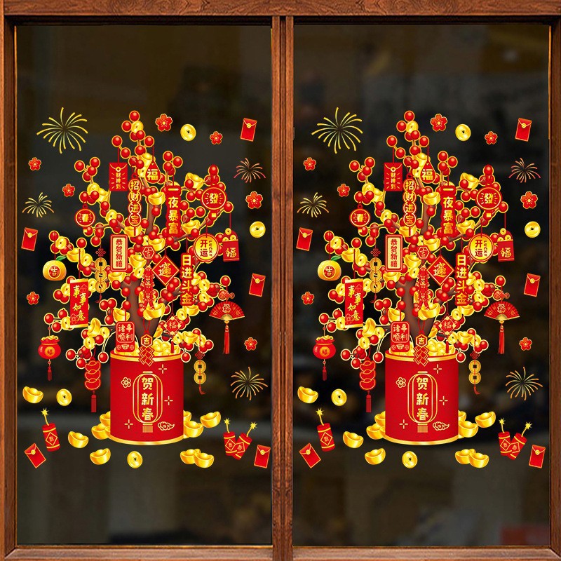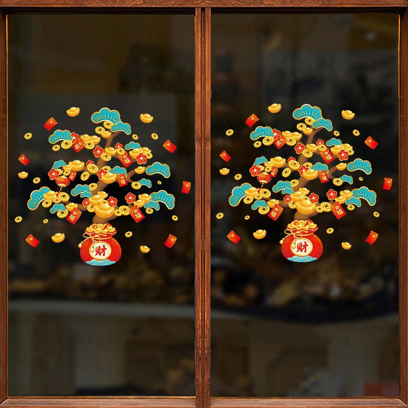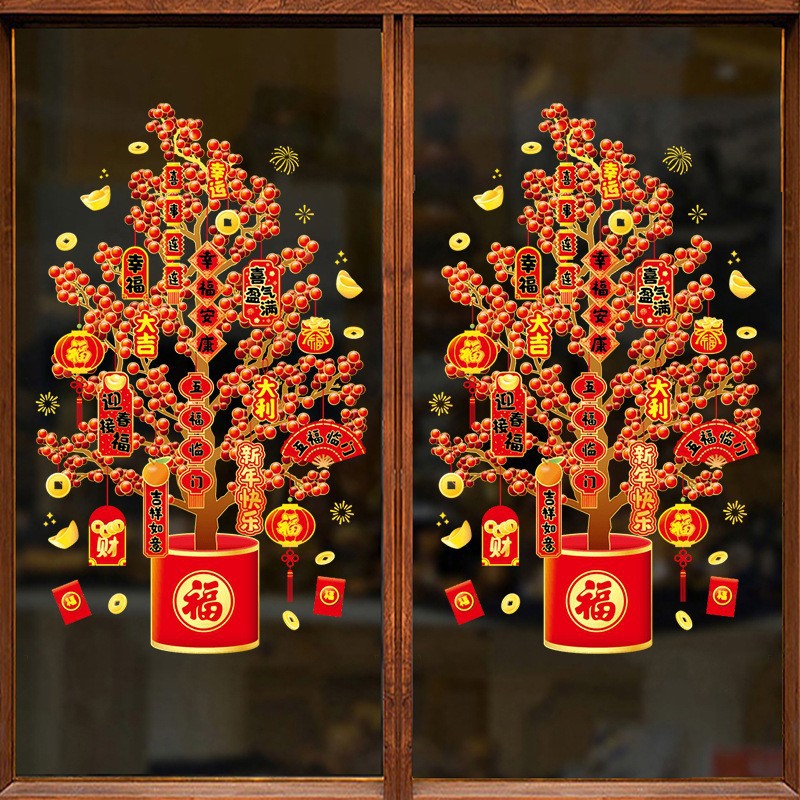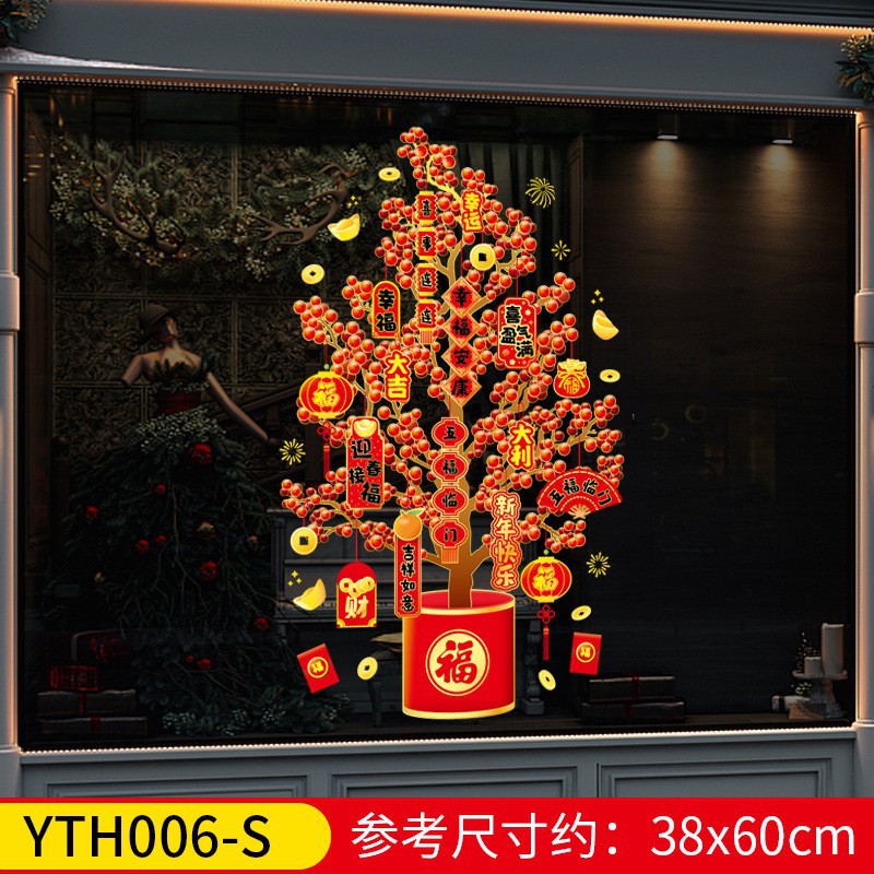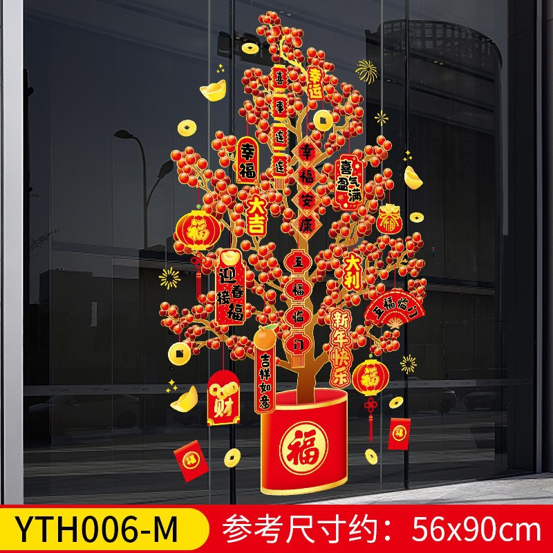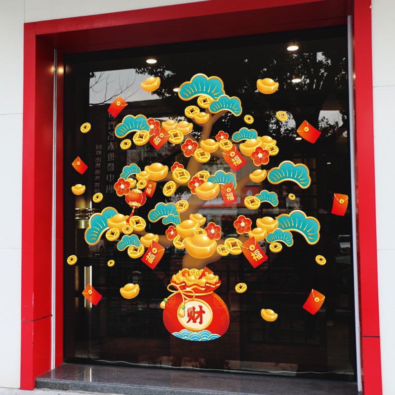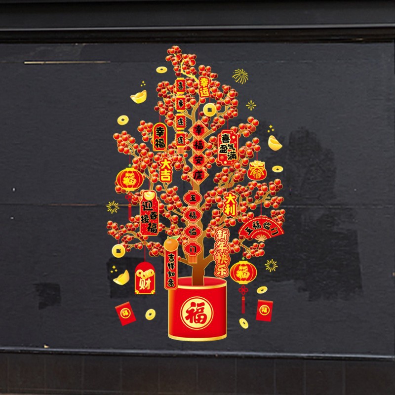 Новый год дерево удачи стеклянная наклейка двери электростатическая наклейка