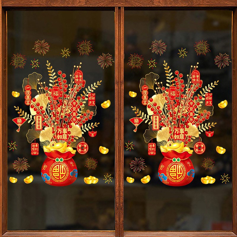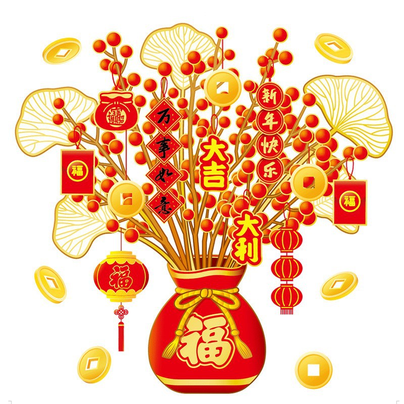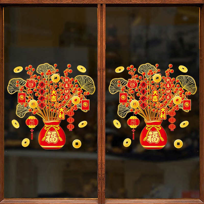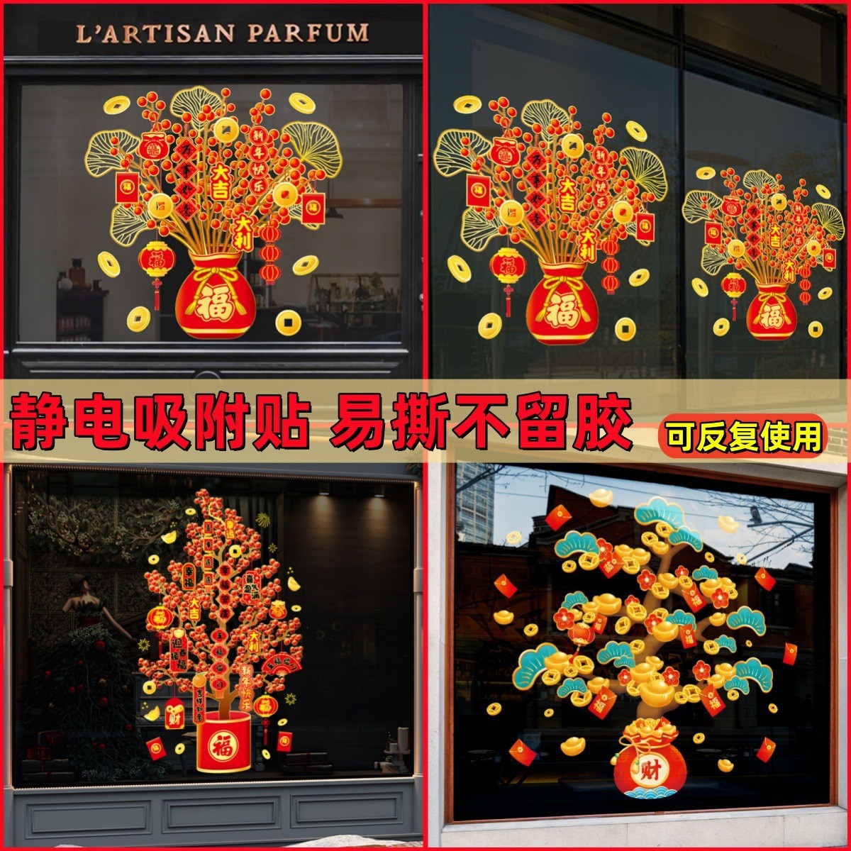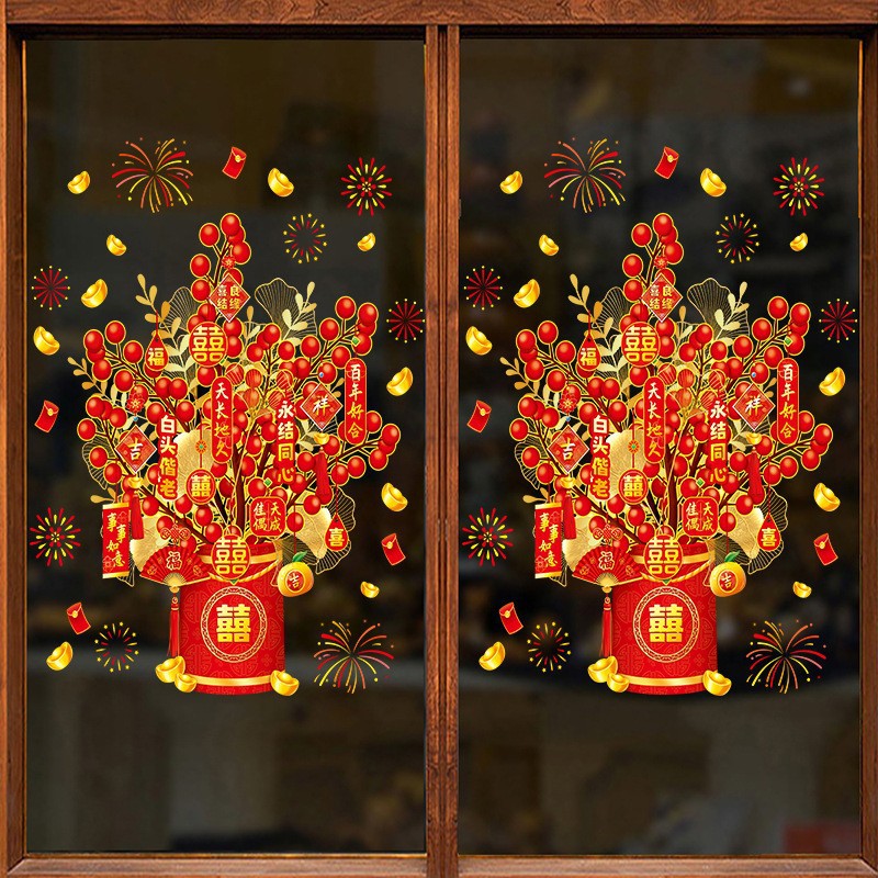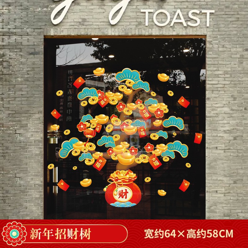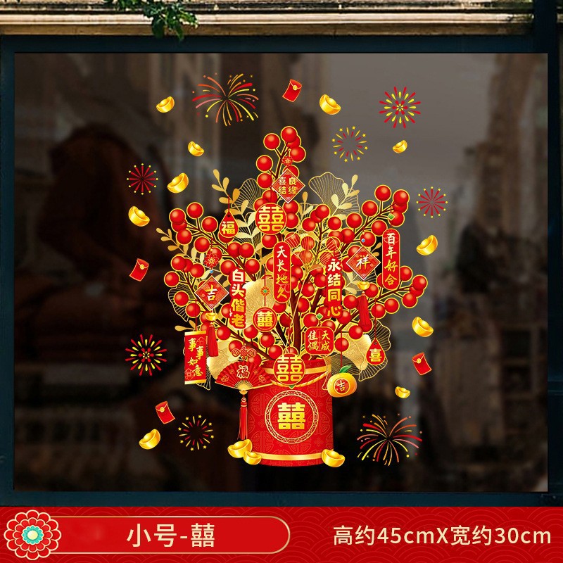 Новый год дерево удачи стеклянная наклейка двери электростатическая наклейка