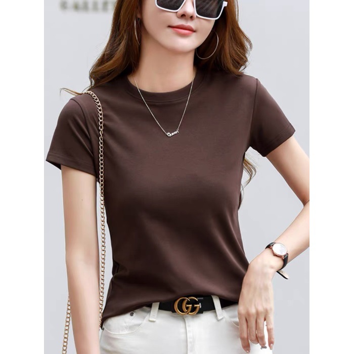 Главная страница > Коричневая футболка на правое плечо, женская летняя футболка с короткими рукавами в корейском стиле, внутренняя многослойная рубашка, обтягивающий топ, футболка из чистого хлопка, эластичная рубашка