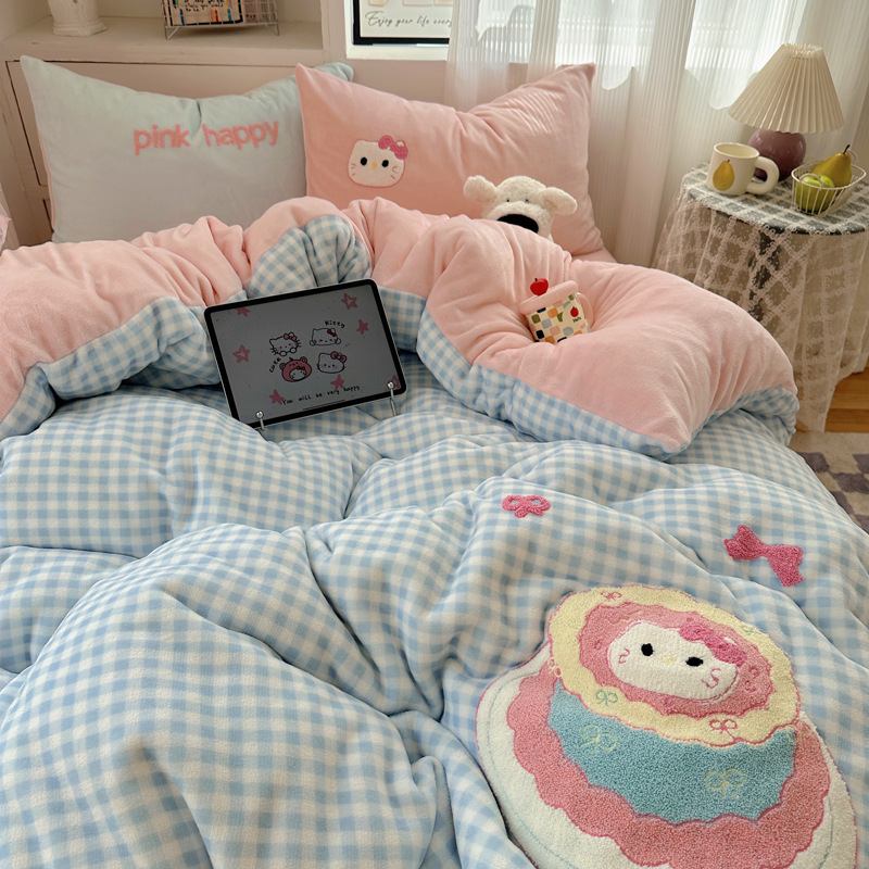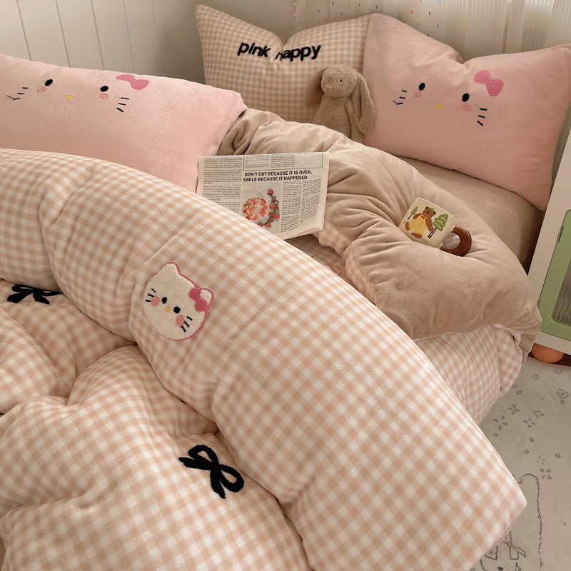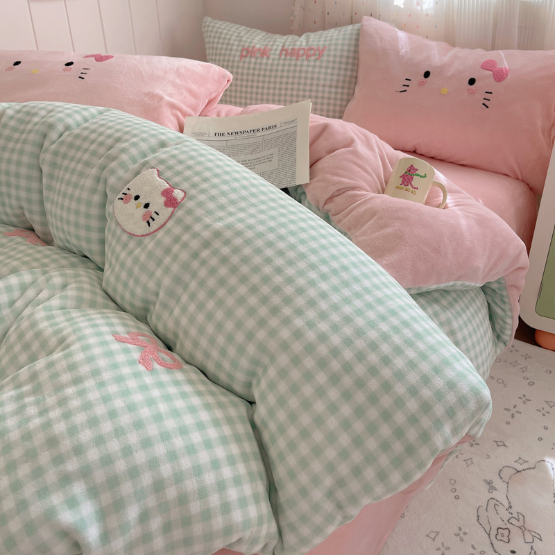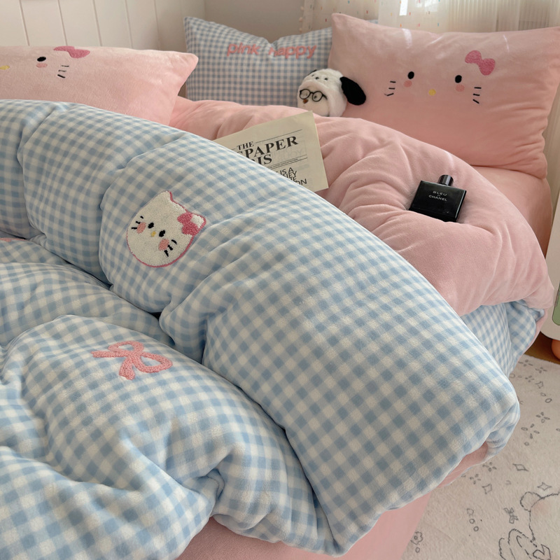 Категория А, молочный бархат, набор из четырех частей, мультяшный полотенце, стеганое одеяло, фланелевые простыни, коралловый бархат, студенческое общежитие, набор из трех частей