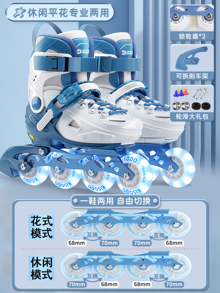 Ocean Blue [Утолщенный встроенный держатель ножа с полной вспышкой, рекомендуемый для начинающих] Защита шлема + замок на колесо + подарочный пакет (бесплатный рюкзак)