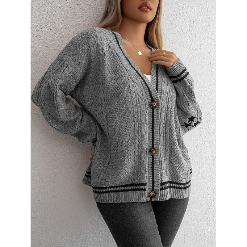 Главная страница > Трикотажный кардиган свитер женский 202 осень-зима ленивый ветер вышивка звезды свободный вязаный кардиган куртка