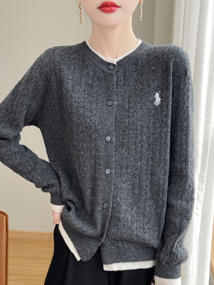 Главная страница > Весенний и Осенний Поддельный Два Круглый Воробьевой Кардиган Энди Фархат Женский дизайн Чувство Вышивка Пони Свободный Свитер Пальто Вязаный Вязаный