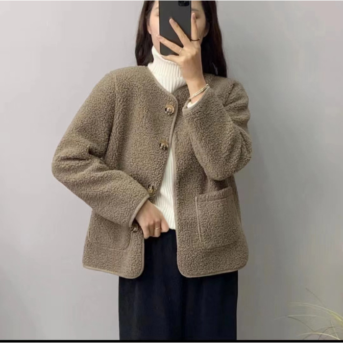 Главная страница > Женское пальто из овечьей шерсти, Новый Свободный Новый осенний маленький свободный кардиган из овечьей шерсти в Корейском стиле, однотонный топ
