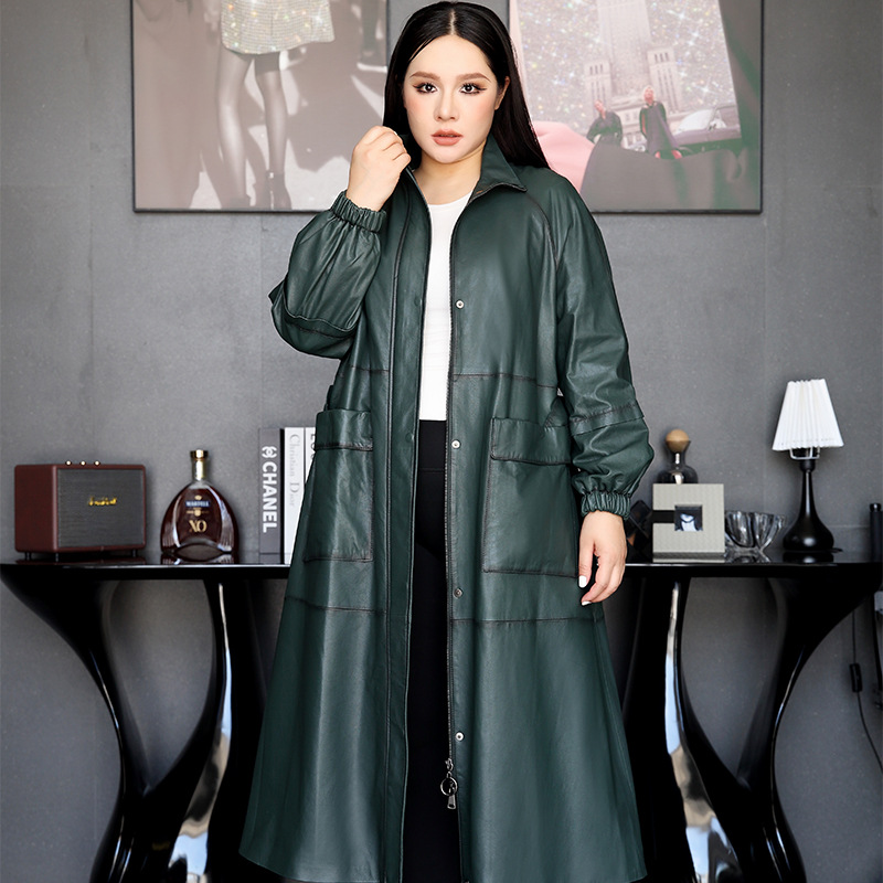Главная страница > Женская кожаная куртка больших размеров, модная и стильная, оптом, длинная чёрная куртка из натуральной кожи, весна-осень.