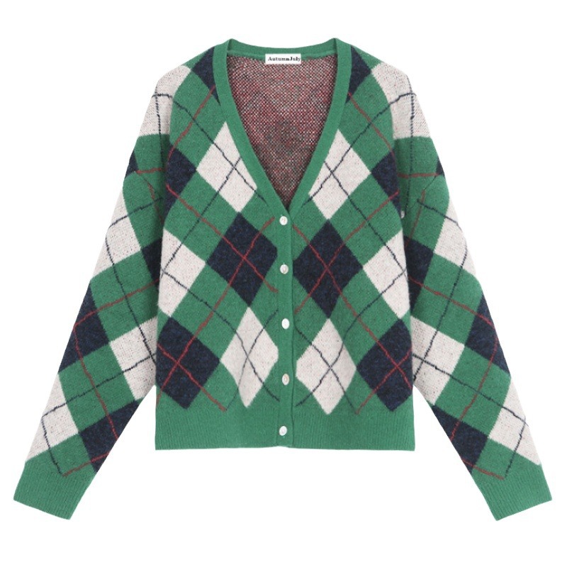 Свитер для женщин в стиле интернет-селебрити, вязаный топ с ромбовидным узором в ретро-стиле, студенческая куртка с V-образным вырезом, стройнящая фигуру, подходит для весны, осени и зимы, новая модель для женщин 2025 года.