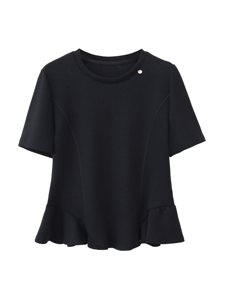 Главная страница > В наличии большой размер с рюшами, юбка с круглым вырезом, женская футболка с короткими рукавами, однотонный тонкий воздушный хлопковый топ, уменьшающий возраст.