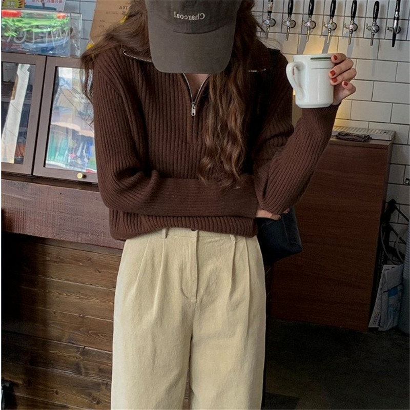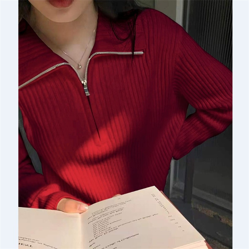 Главная страница > Осень и зима 2023 новый свитер на молнии свитер женский Свободная верхняя одежда Нижняя топ в западном стиле с длинными рукавами нижняя рубашка Мода