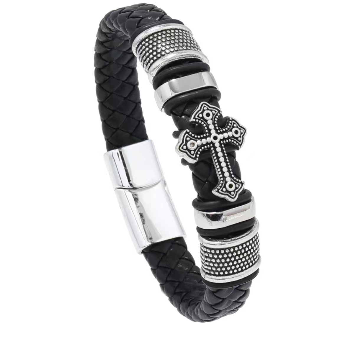 Мужской кожаный браслет в европейско-американском стиле с магнитной застежкой, плетеный браслет из искусственной кожи и сплава с элементом креста.