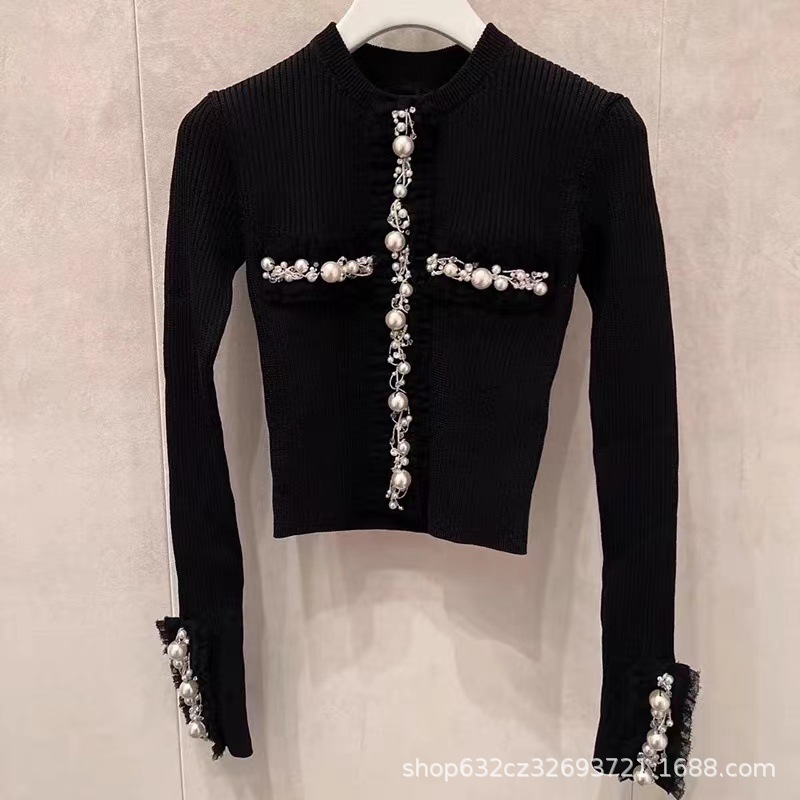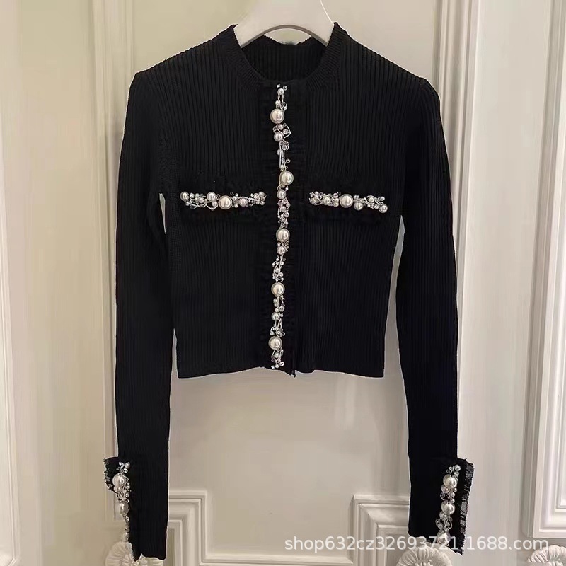 Главная страница > В наличии черный женский вязаный кардиган в стиле Chanel с отделкой из стразов, новинка осени 2025 года, элегантный нишевый свитер.