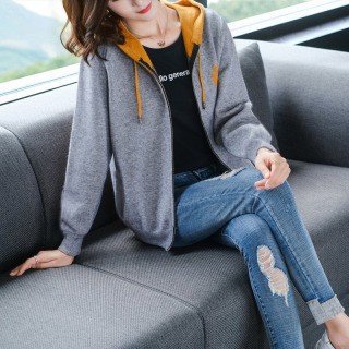 Главная страница > Осенне-зимний новый корейский стиль, женский короткий кардиган с капюшоном большого размера, модная толстовка для студенток, бархатная утолщенная куртка
