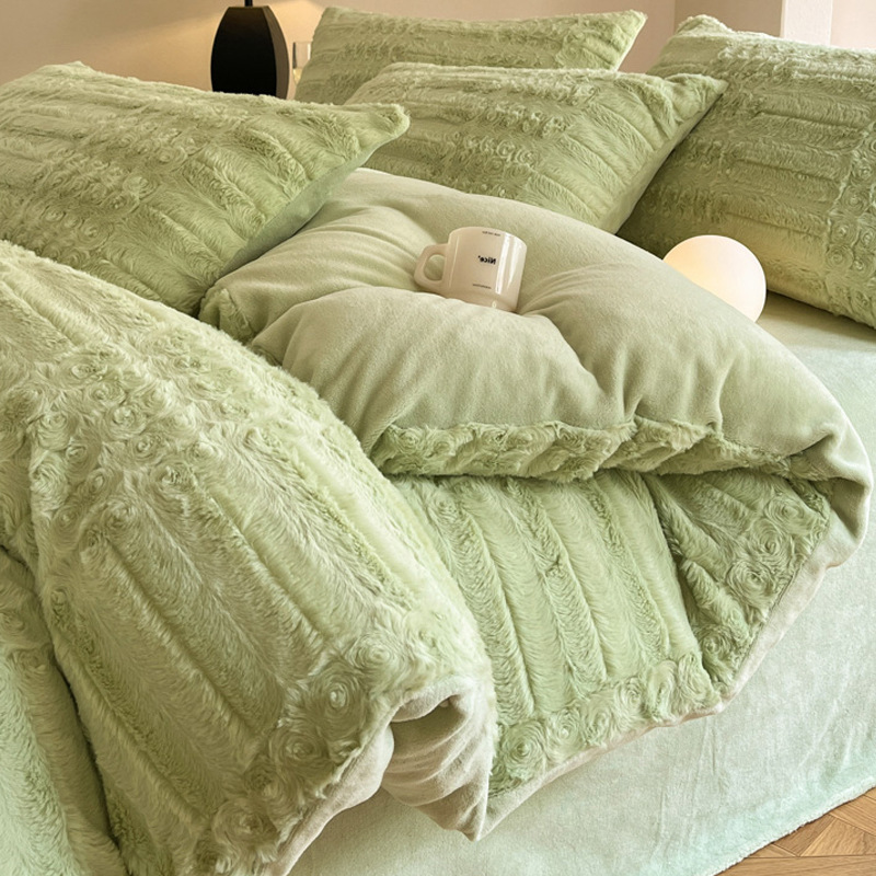 Главная страница > Плюшевая кровать набор из четырех частей зимой толстый молочный бархат постельное белье Коралловый бархат