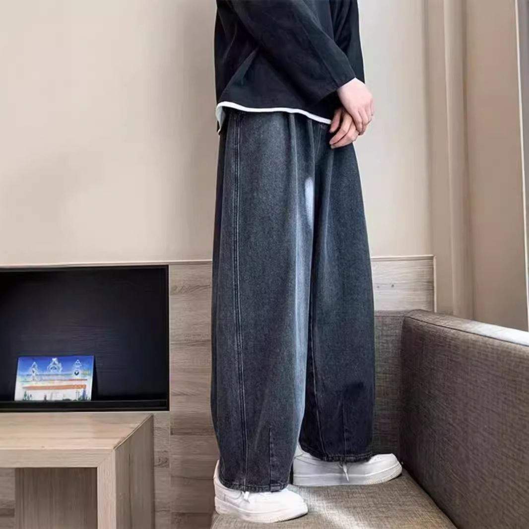 Японские ретро джинсы cityboy мужские свободные прямые широкие брюки oversize темно-синие брюки
