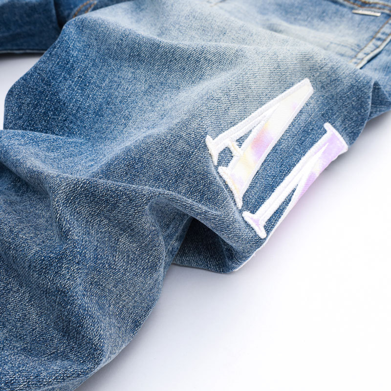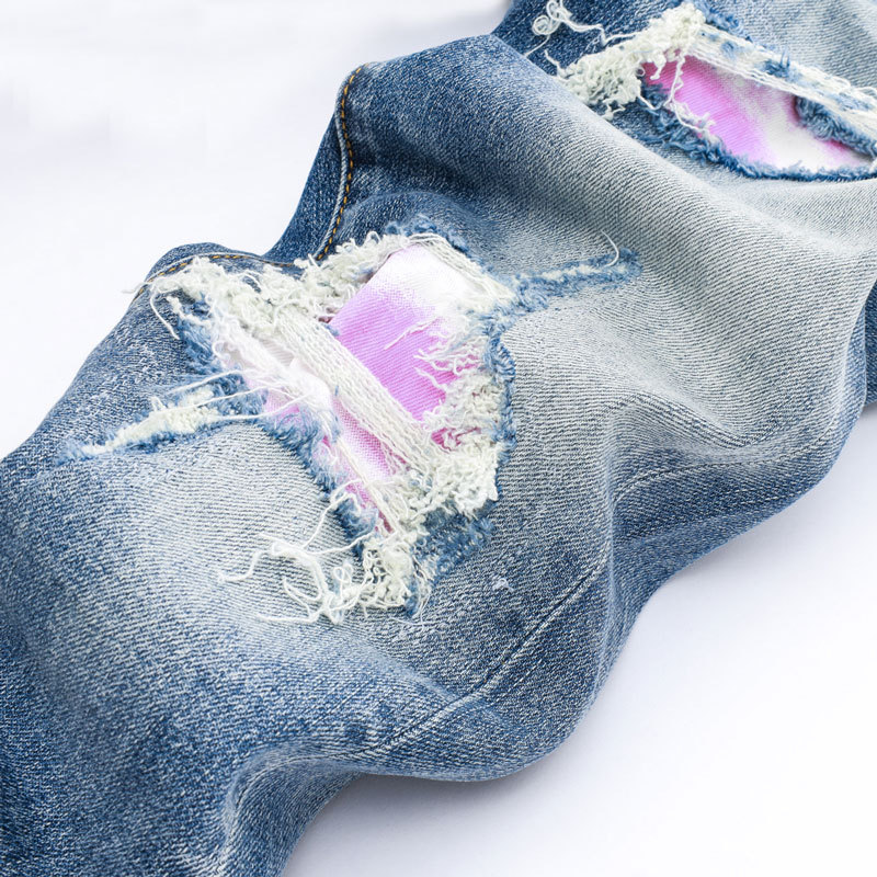 Главная страница > Европейские и американские модные мужские джинсы светло-голубые рваные нашивки модный бренд хип-хоп микро эластичные узкие брюки-Карандаш мужские брюки