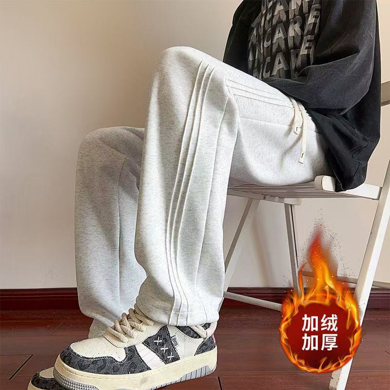 Главная страница > Мужские брюки прямого кроя, весна-осень, высококачественные серые спортивные штаны, свободные и универсальные для студентов, спортивно-повседневные длинные брюки.