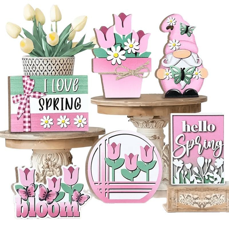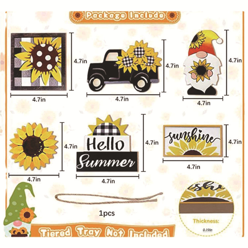 Кросс-бордерный набор из 6 предметов: декоративные подносы с подсолнухами, деревянные украшения в стиле кантри, эльфы для дома