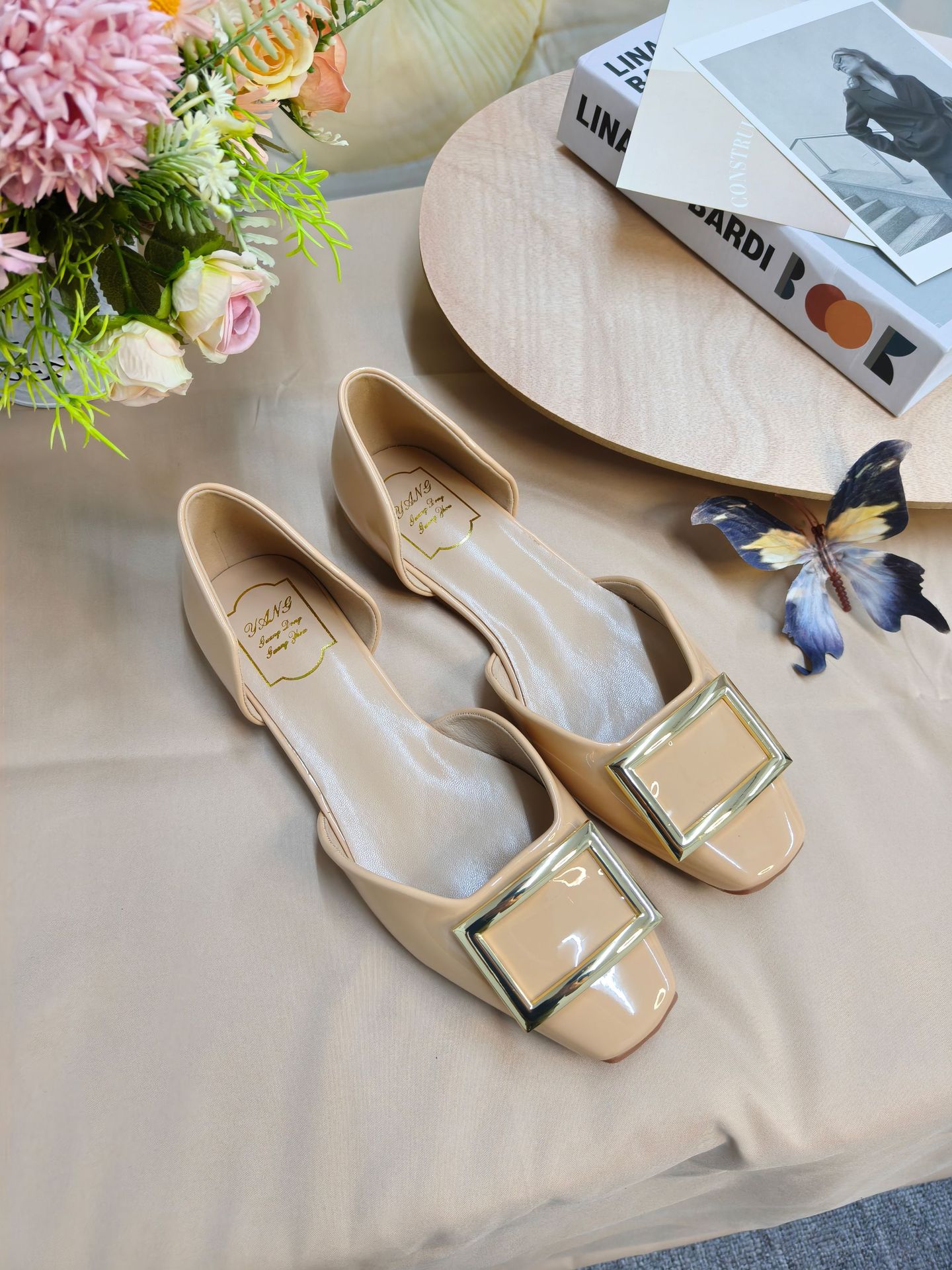 Готово в наличии и отправлены в секунду! Обувь в том же стиле Grape Mom, рабочая одежда RV, квадратная пряжка, лакированная кожа, квадратный носок, мелкий рот, полые туфли на плоской подошве для женщин, летние