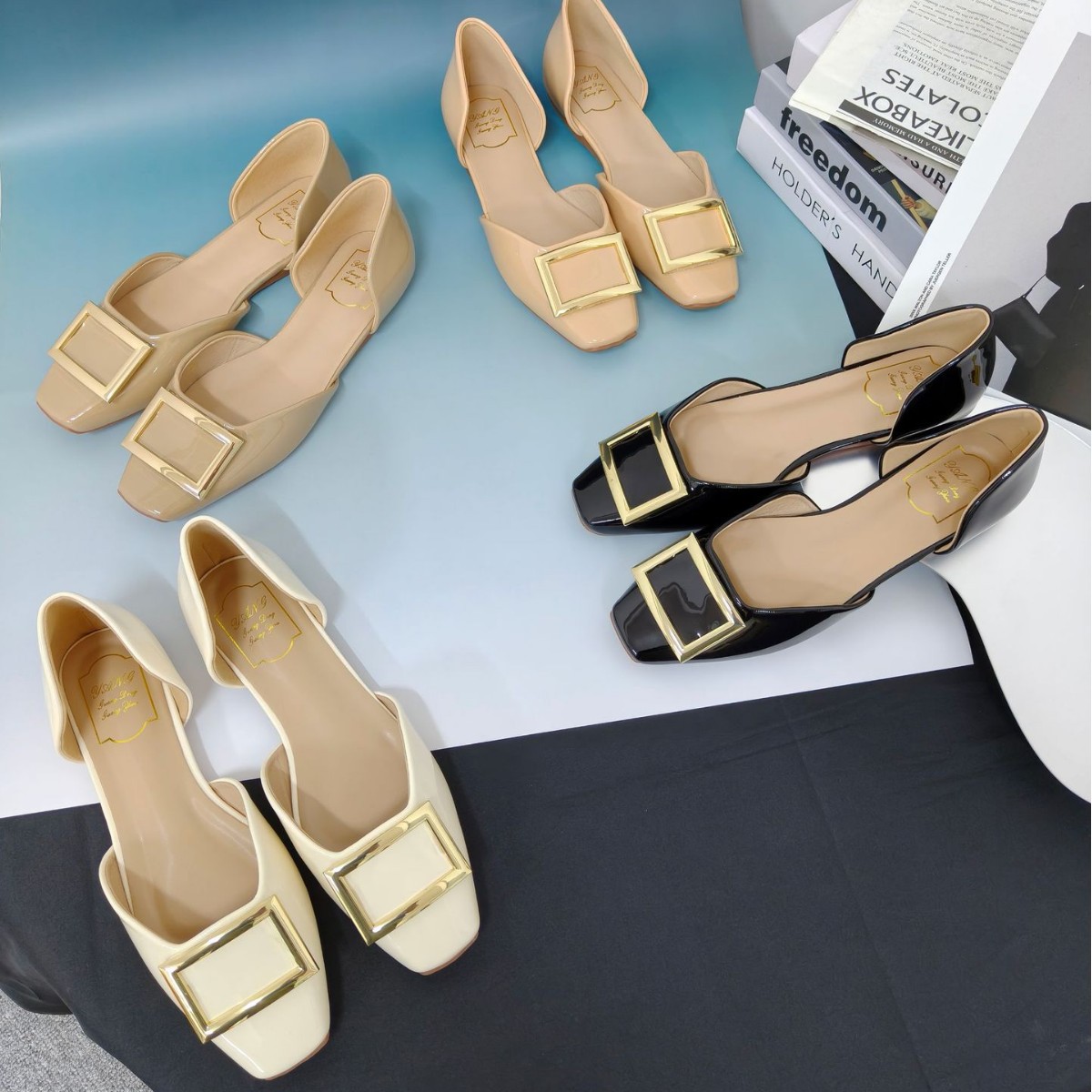 Главная страница > Готово в наличии и отправлены в секунду! Обувь в том же стиле Grape Mom, рабочая одежда RV, квадратная пряжка, лакированная кожа, квадратный носок, мелкий рот, полые туфли на плоской подошве для женщин, летние