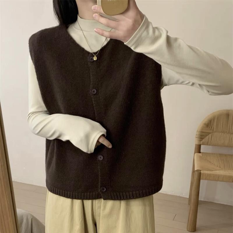 Главная страница > 101.2kg двусторонний вязаный жилет для женщин, ранняя осень, новый корейский стиль, свободный ретро мягкий восковой свитер, жилет, многослойный кардиган