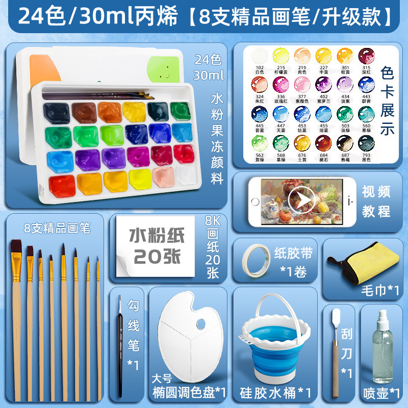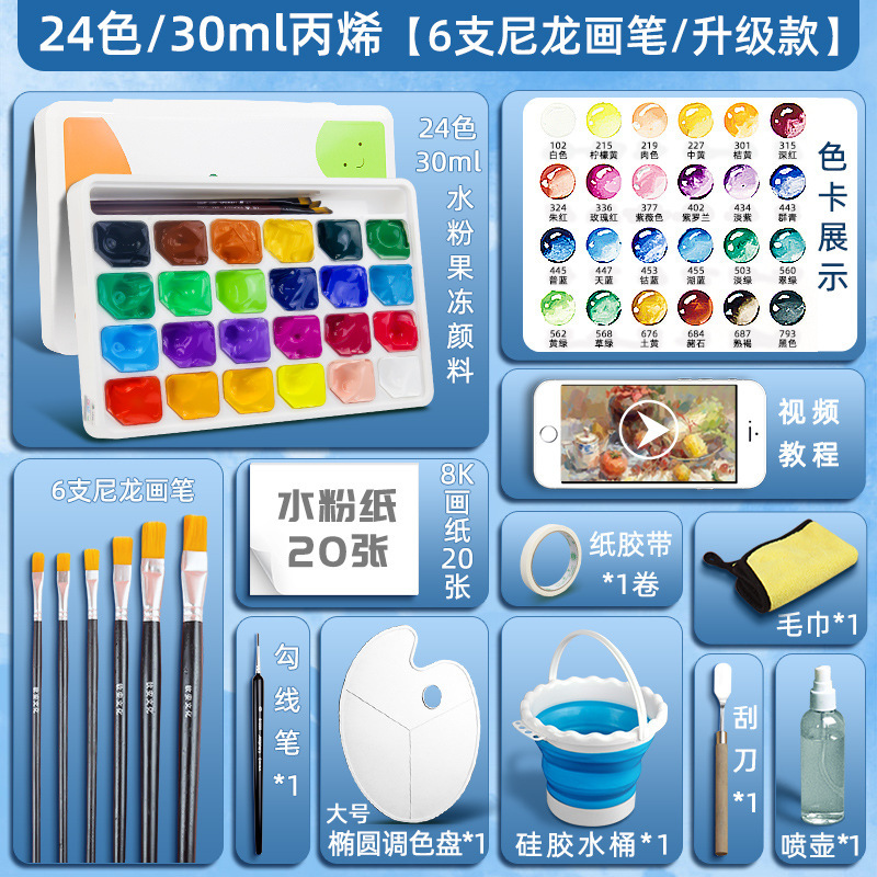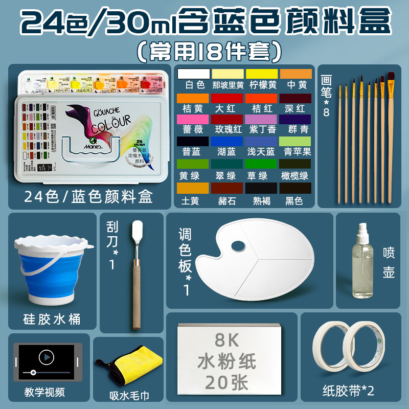 24-цветная синяя коробка по 30 мл [гуашь] + Обновление 18 инструментов