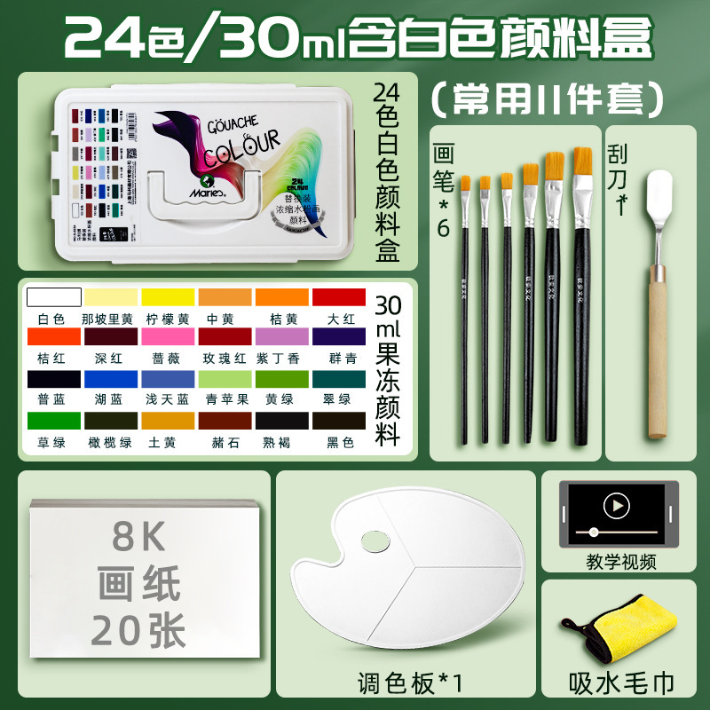 24 цвета 30 мл красная коробка [гуашь костюм] + 11 средств для начинающих