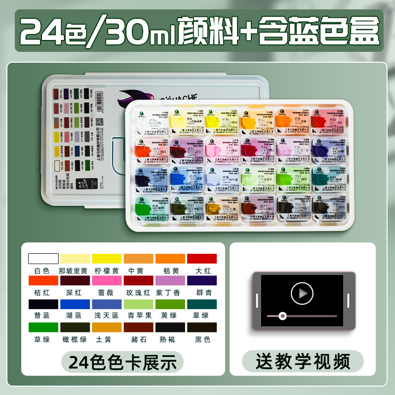 24 цвета 30 мл белая коробка [гуашь костюм] + Обновление 18 инструментов