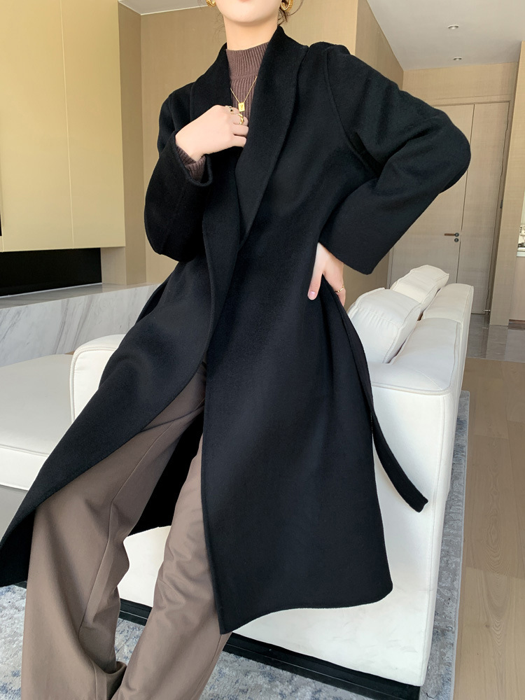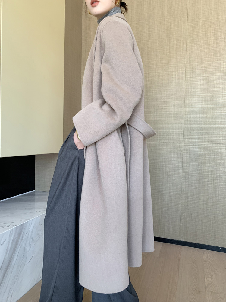 Главная страница > Длинное шерстяное пальто на шнуровке из 100% шерсти, новое, двустороннее, свободного кроя, с отложным воротником, ниже колена, для женщин, осень-зима