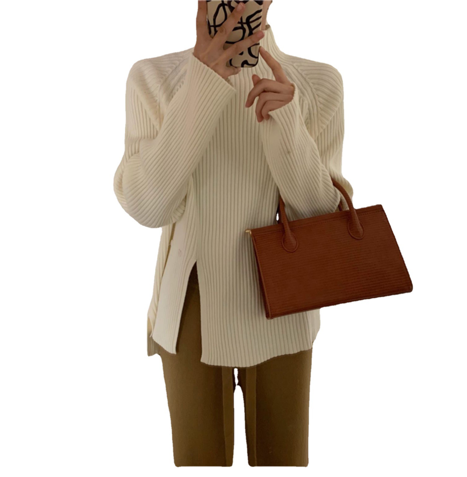 Главная страница > Женский свитер-водолазка в Корейском стиле, дизайнерский нишевый свитер с длинными рукавами в Корейском стиле, внутренняя вязаная куртка с разрезом в стиле ретро, Осень-зима